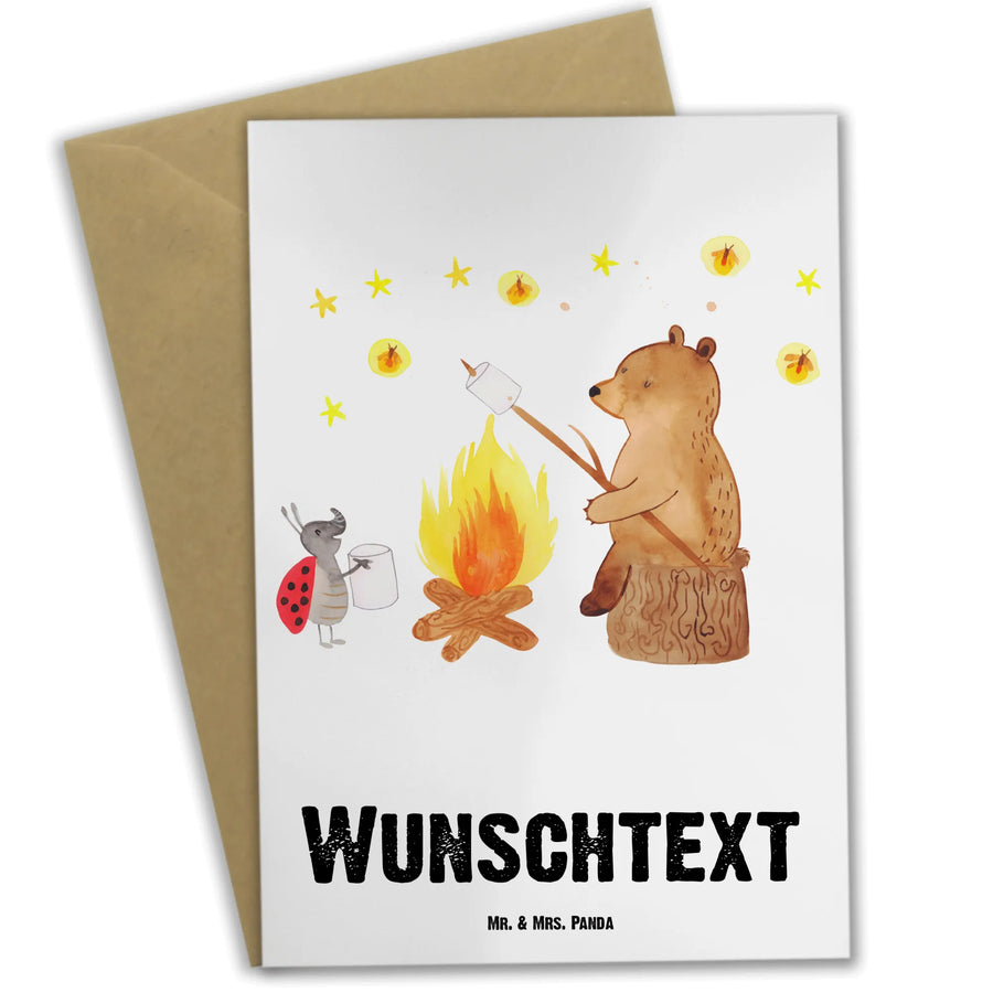 Personalisierte Grußkarte Bär & Marienkäfer Lagerfeuer