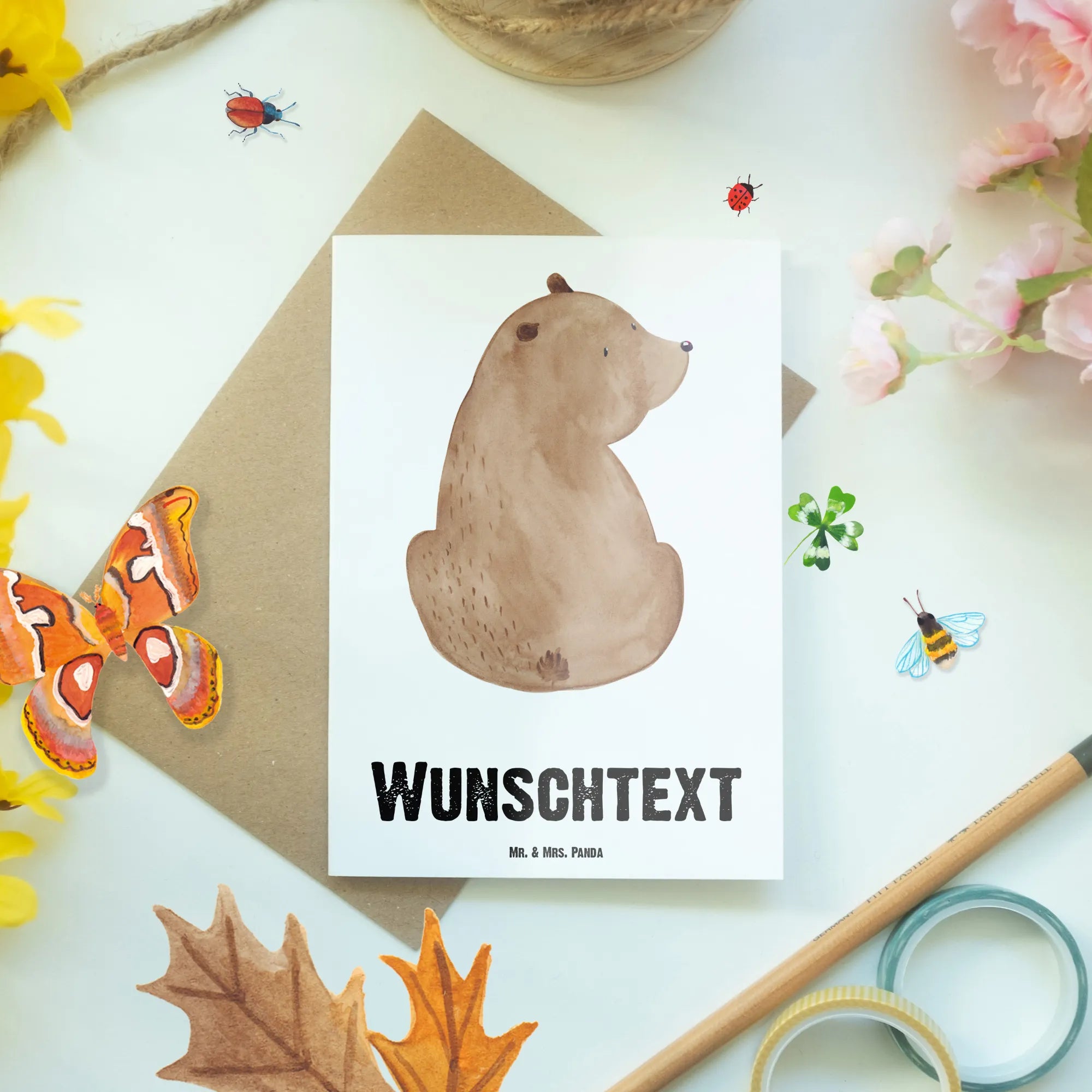 Die personalisierte Grußkarte 'Bär Schulterblick' von Mr. & Mrs. Panda ist das perfekte Geschenk für alle, die Wert auf persönliche und liebevolle Botschaften legen. Mit ihrem süßen Bärenmotiv, das niedlich über die Schulter schaut, bringst du Freude und Wärme in jeden Gruß.
