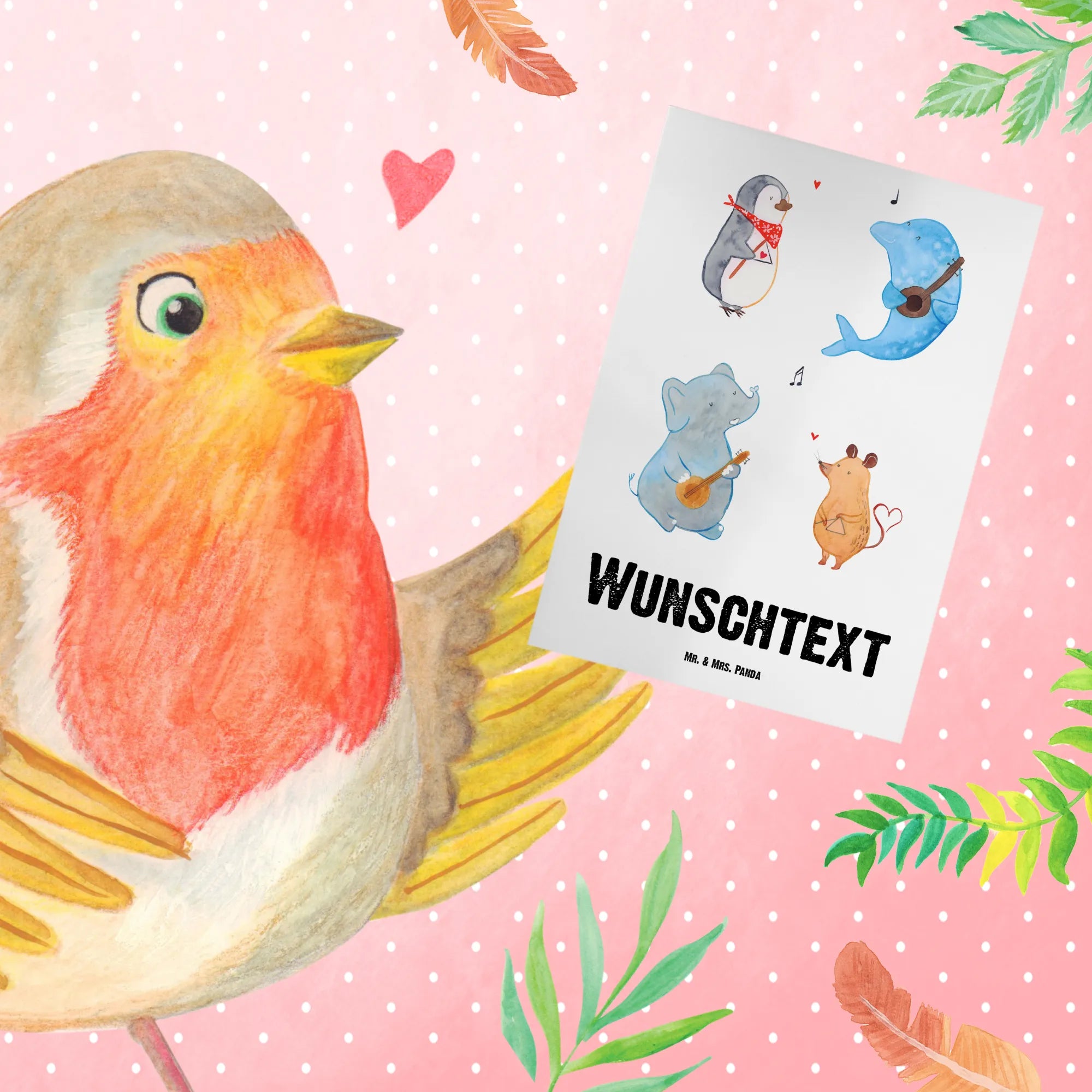 Die personalisierte Grußkarte "Big Band" aus der Small World Kollektion von Mr. & Mrs. Panda ist das perfekte Geschenk für alle Musikliebhaber und Tierfreunde! Stell dir vor, du überreichst eine wundervolle Karte, die mit einem bezaubernden Motiv von Pinguinen, Mäusen, Delfinen und Elefanten geschmückt ist, die zusammen in einem fröhlichen Musikensemble musizieren. Diese Karte bringt nicht nur Freude, sondern auch gute Laune mit ihren lustigen Sprüchen und fröhlichen Tiermotiven.