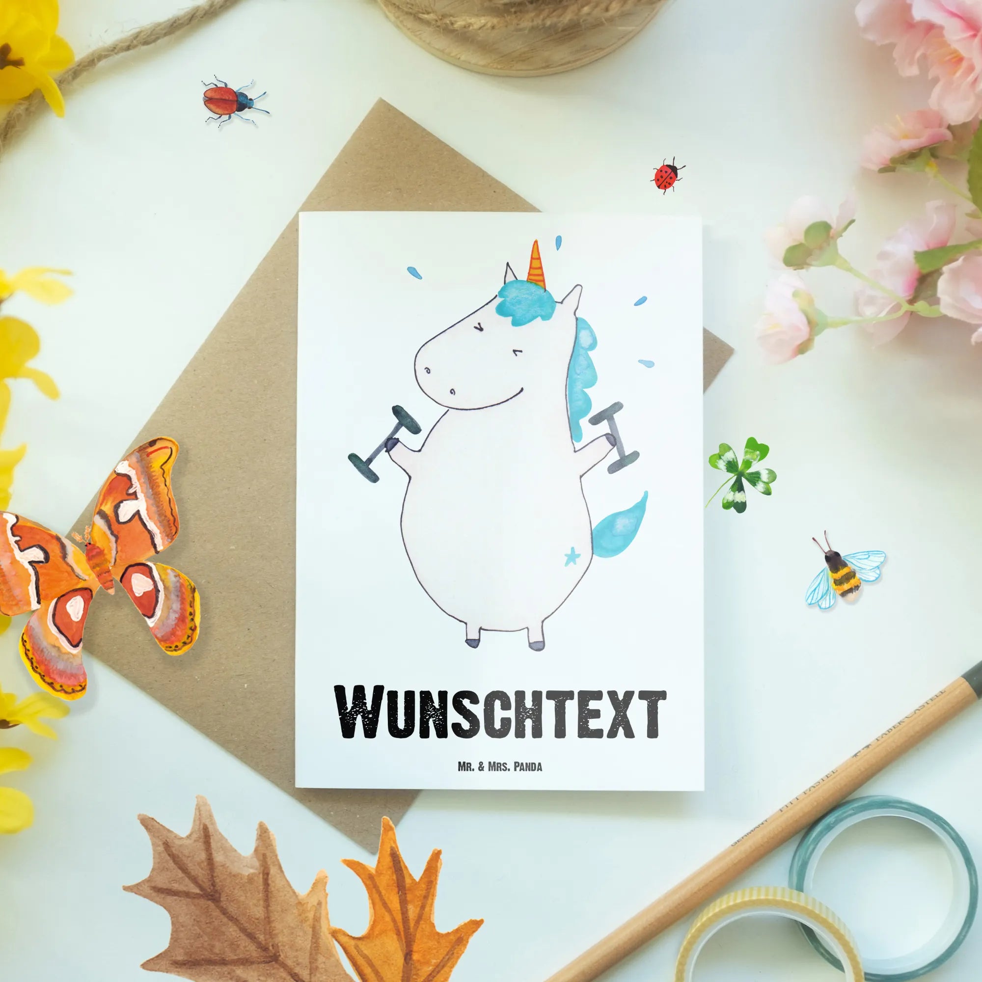 Die personalisierte Grußkarte "Einhorn Fitness" von Mr. & Mrs. Panda ist der perfekte Begleiter für alle Fitness-Fans und Einhornliebhaber! Ob als Glückwunschkarte zum Geburtstag, zur Hochzeit oder als Einladungskarte, sie sorgt für ein Lächeln und positive Motivation. Mit ihrem süßen Motiv, das ein fröhliches Einhorn zeigt, das Hanteln stemmt, und dem spritzigen Spruch "Ich schwitze nicht. Mein Fett weint" ist sie ein echter Hingucker und ein tolles Geschenk. Egal ob für Freunde, die gerade im Fitnessstudio durchstarten, oder für die, die einen leichten Motivationsschub brauchen – diese Karte ist genau das Richtige!