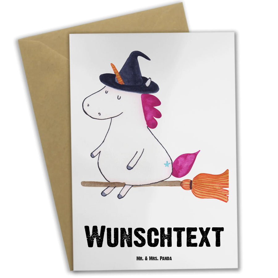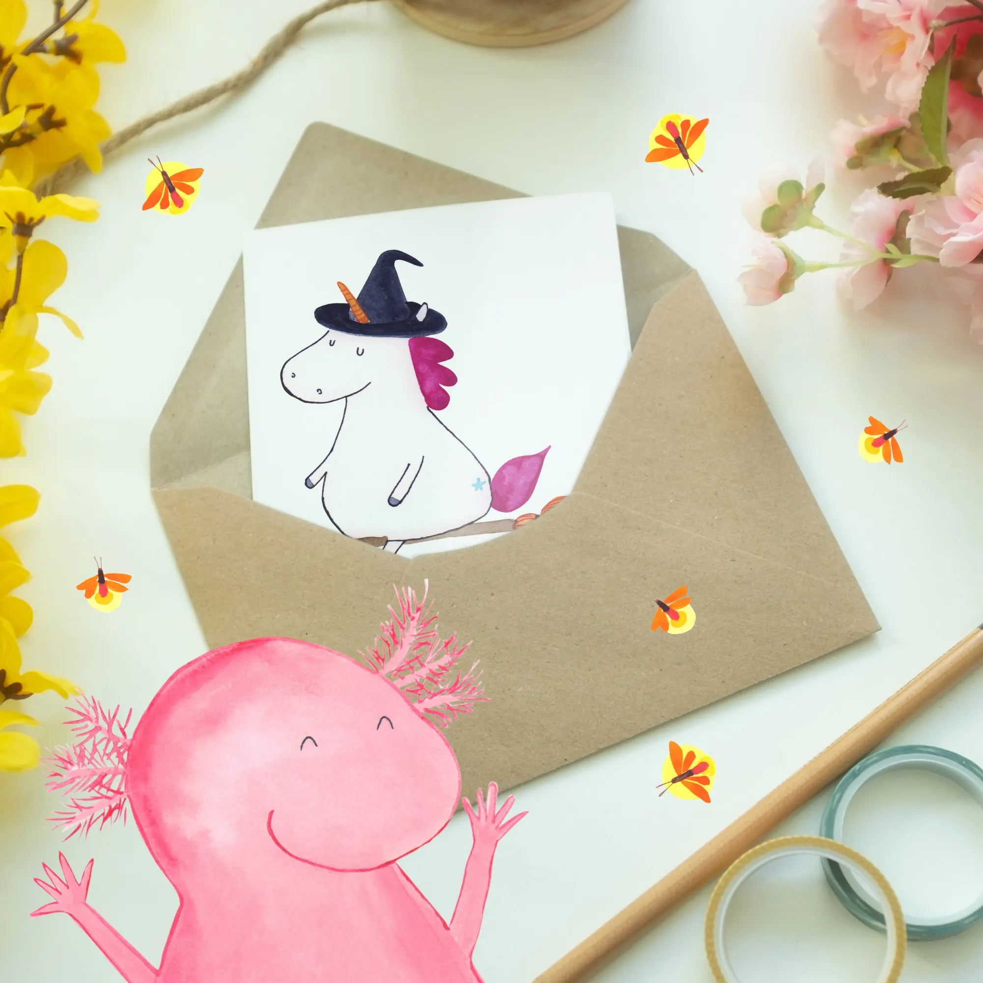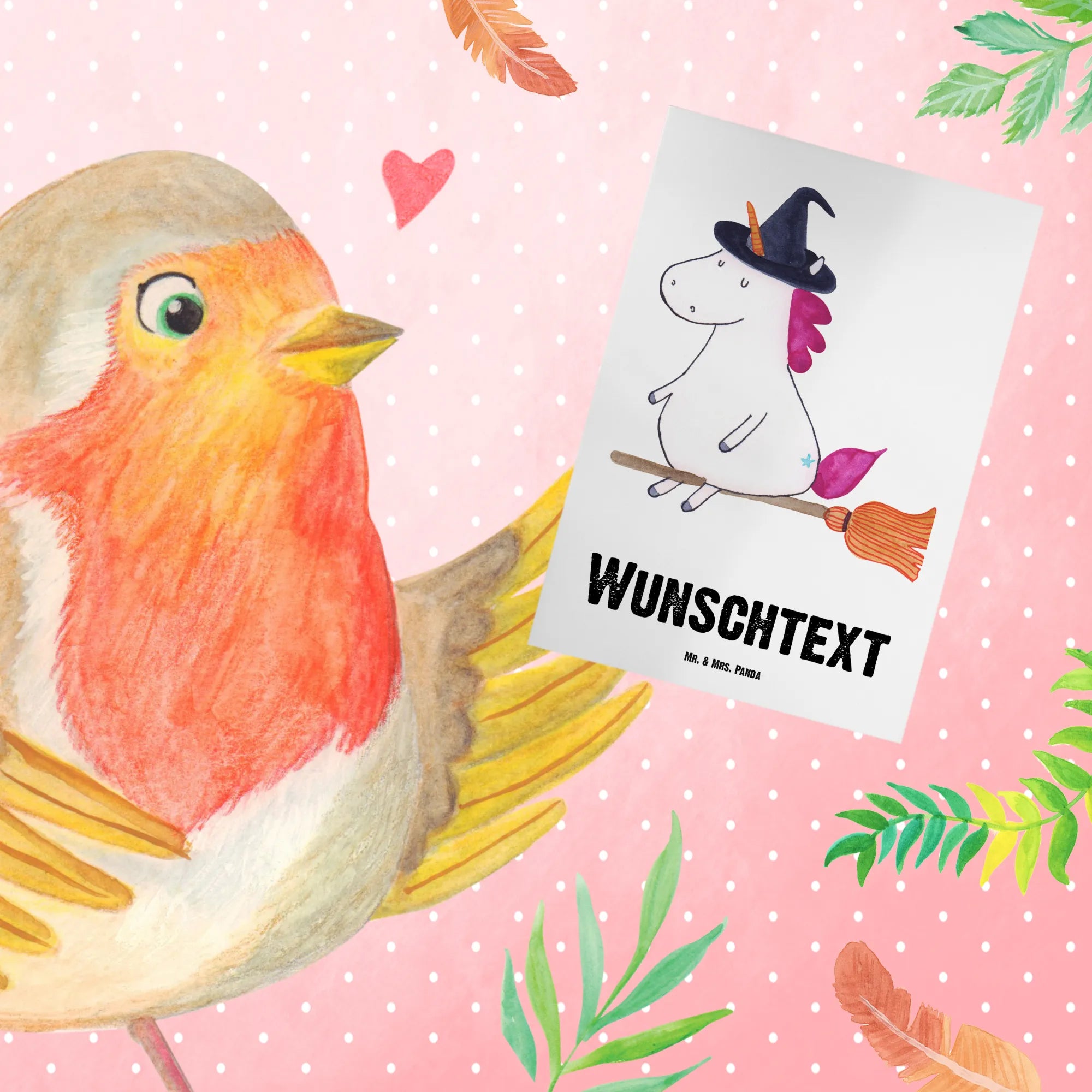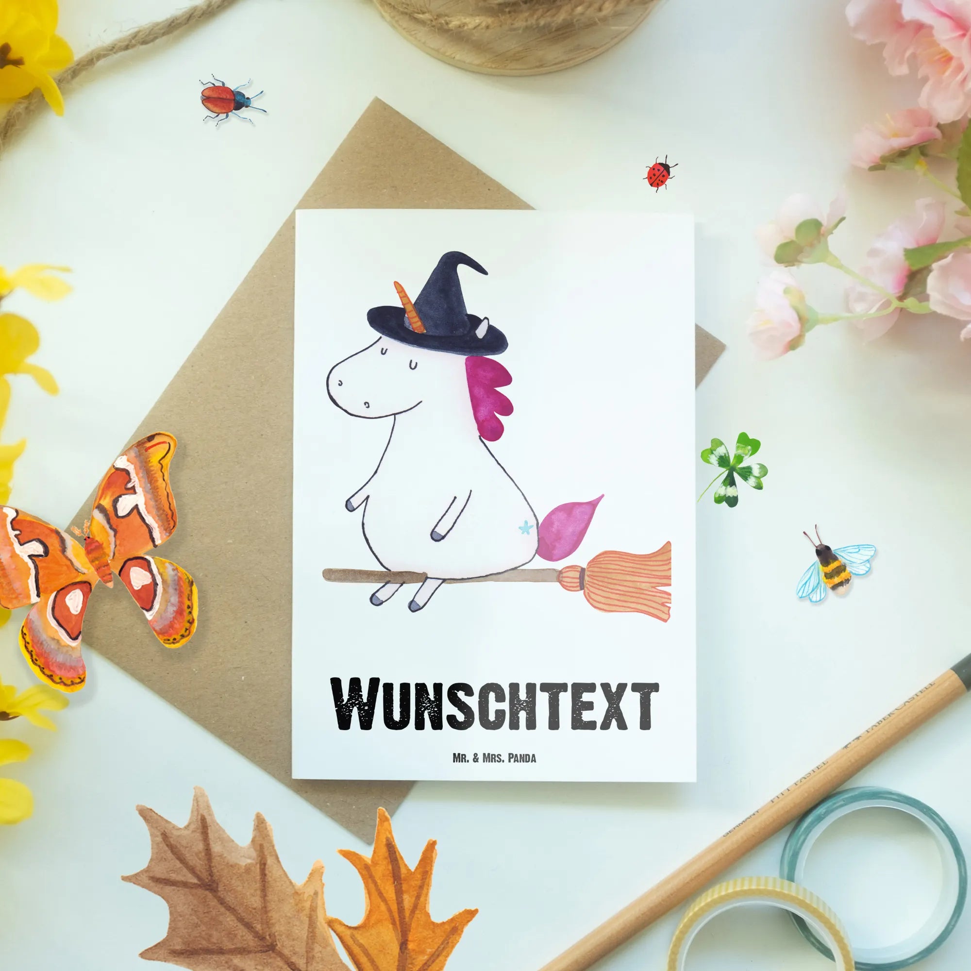 Die personalisierte Grußkarte Einhorn Hexe aus der bezaubernden Einhorn-Kollektion von Mr. & Mrs. Panda ist das perfekte Geschenk für all jene, die ein wenig Magie in ihr Leben bringen möchten. Egal, ob für den Geburtstag deiner besten Freundin, eine Hochzeitsfeier oder einen besonderen Anlass, diese Grußkarte kombiniert niedliche Illustrationen mit einem Hauch von Abenteuer. Das süße Einhorn, das fröhlich auf einem Besen fliegt und einen Hexenhut trägt, verbreitet pure Lebensfreude. Der witzige Slogan "Ich bin Teilzeitengel, Gelegenheitshexe, Halbzeitteufel und Vollzeitverrückte" zaubert jedem ein Lächeln ins Gesicht und sorgt dafür, dass die Karte in schöner Erinnerung bleibt.