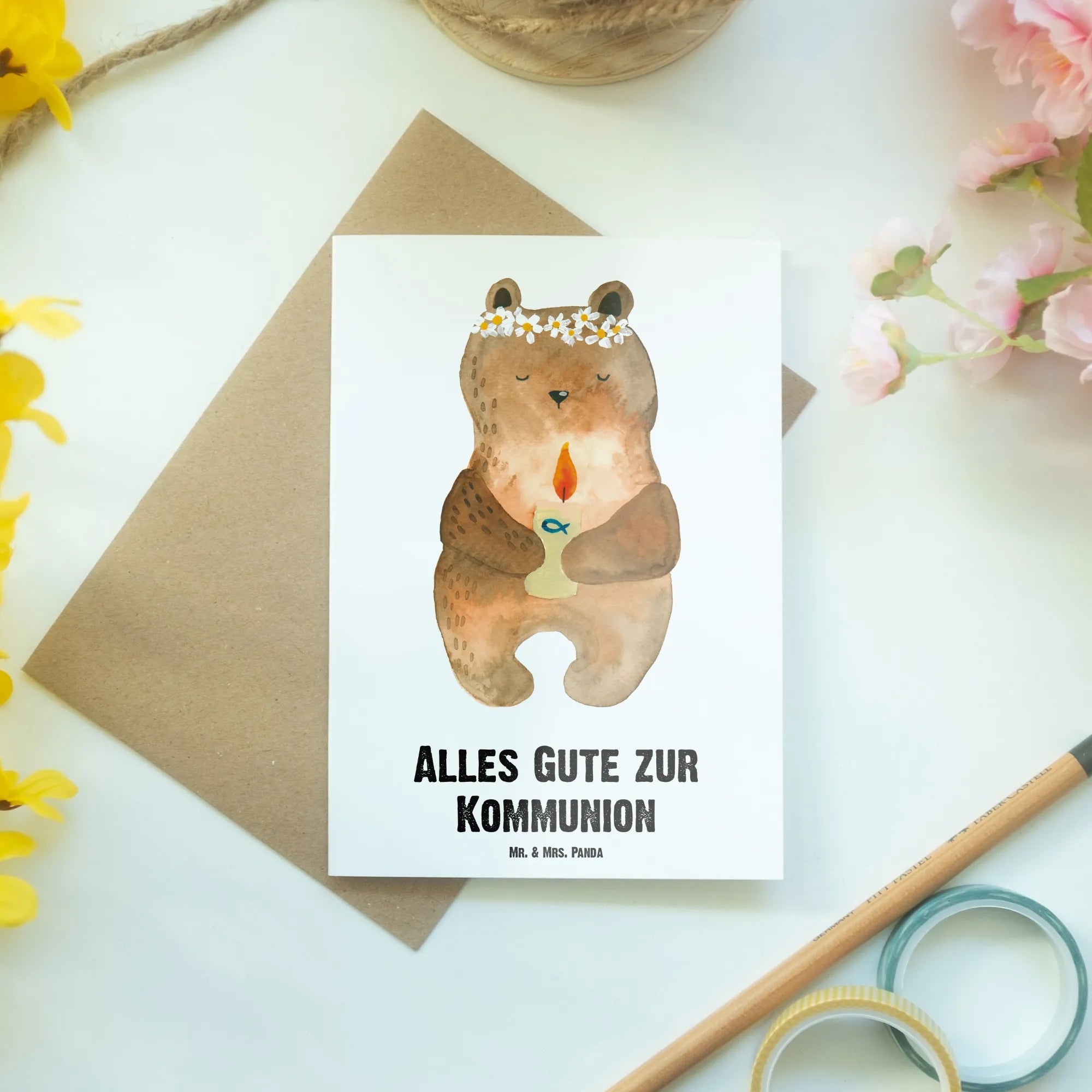 Jedes Mal, wenn sie die Karte in der Hand halten, werden sie sich an diesen besonderen Tag erinnern und die liebevolle Geste zu schätzen wissen. Perfekt für jeden Anlass und ein Idealgeschenk für alle, die bärbegeistert sind! Wenn du auf der Suche nach personalisierten Grußkarten bist, dann ist diese hier die beste Wahl. Verschenke Freude, Liebe und unvergessliche Momente mit der Grußkarte von Mr. & Mrs. Panda zur Kommunion.