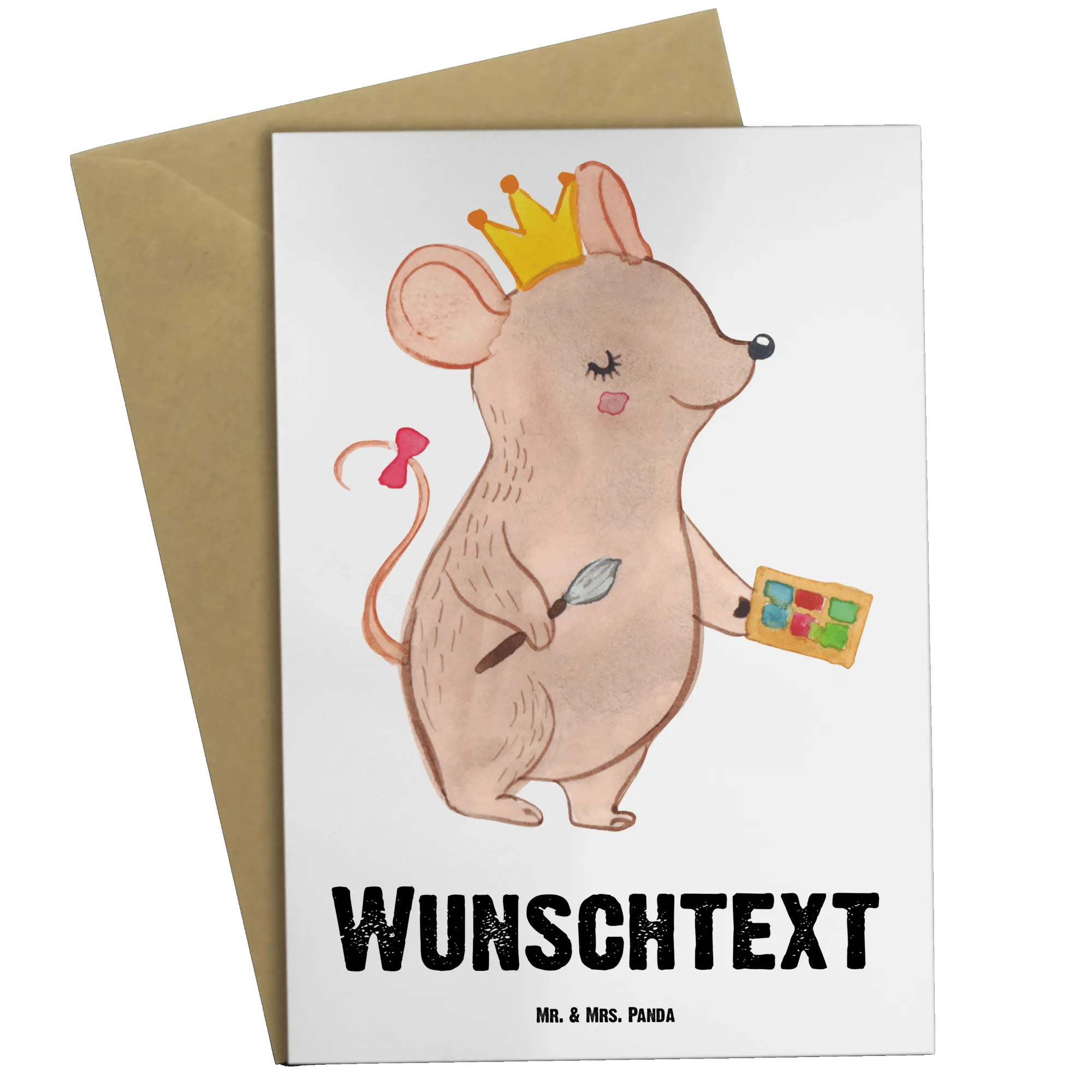 Hier ist sie, die zauberhafte Maus mit ihrer Krone, die uns alle daran erinnert, dass Make-up pure Magie ist! In einer Hand hält sie leuchtenden Lidschatten, in der anderen den Pinsel, bereit, unsere Schönheitsgeheimnisse zu enthüllen. Ihr Spruch, 'Du bist nur ein halber Mensch, wenn du keine Maskenbildnerin bist', ist ein wunderbarer Aufruf, die Schönheit in uns selbst zu finden und anzunehmen. Eine Kosmetikerin oder Visagistin zu sein, ist mehr als ein Beruf; es ist eine Leidenschaft, die wir in jedem Kosmetikstudio erleben können. Lasst uns gemeinsam das Leben in all seinen Farben feiern!