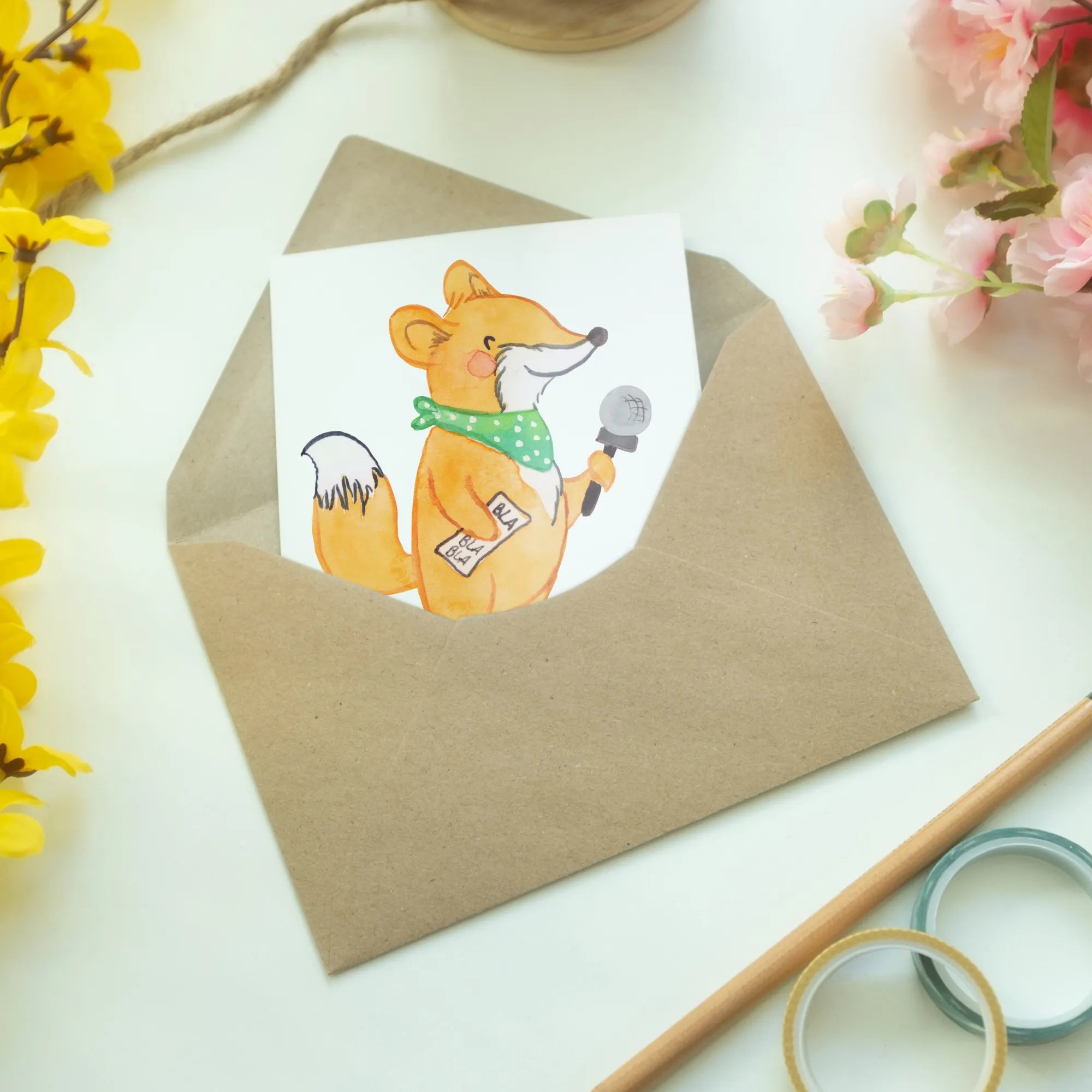 Du kannst den Text auf der Vorderseite ganz individuell nach deinen Wünschen gestalten. Der freche Spruch "Du bist nur ein halber Mensch, wenn du kein Sportjournalist bist" ist nicht nur ein Lächeln wert, sondern bringt auch die Leidenschaft deines Beschenkten perfekt zum Ausdruck. Unser niedlicher Fuchs, der mit einem Halstuch, Notizen und Mikrofon in der Hand illustriert ist, symbolisiert die kreative Seele eines Sportjournalisten. Die hochwertige Karte besteht aus 300 Gramm Karton und bietet eine matte Innenseite, die sich hervorragend zum Beschriften und Individualisieren eignet.