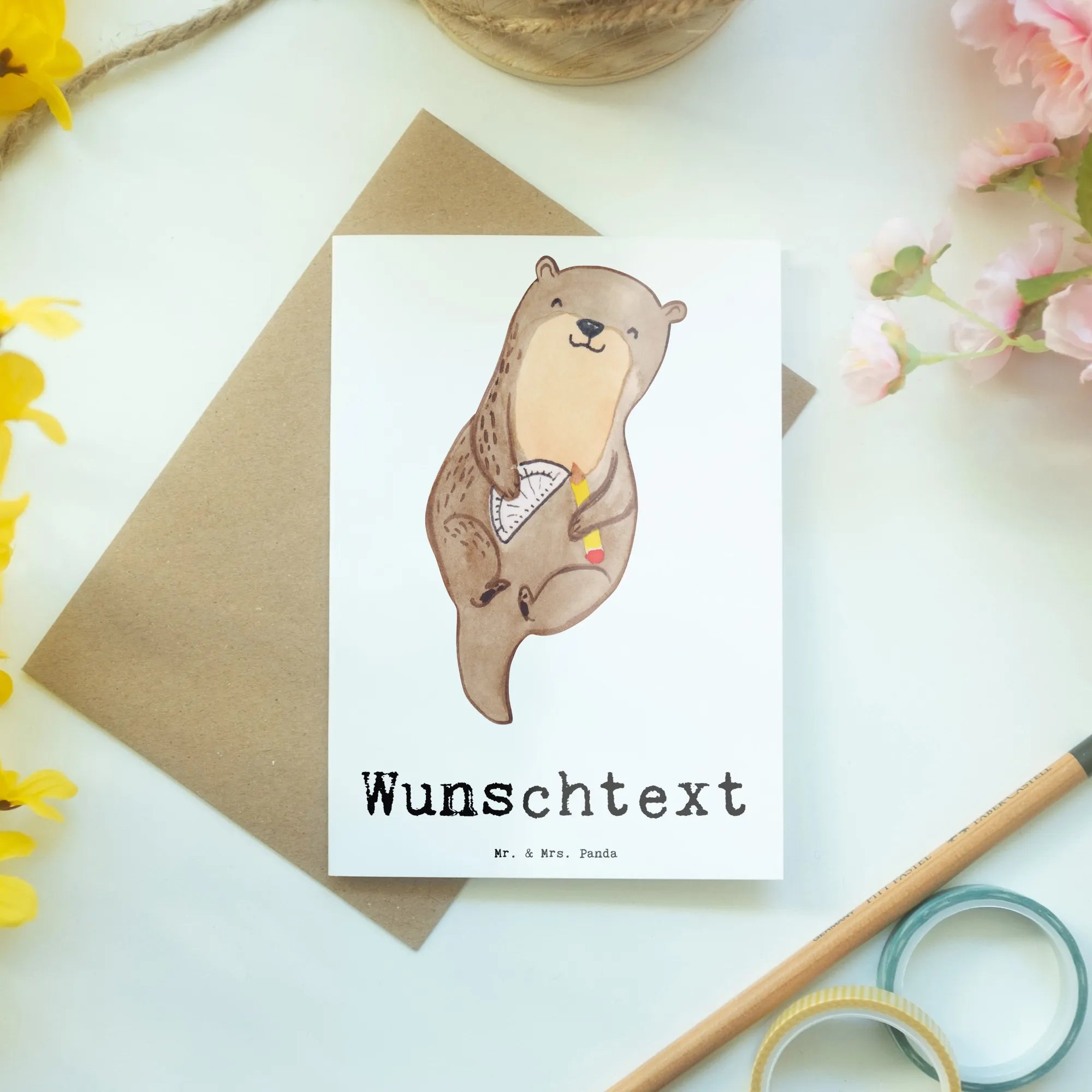 Entdecke die perfekte personalisierte Grußkarte für alle Technischen Produktdesigner in deinem Leben! Diese liebevoll gestaltete Grußkarte aus der einzigartigen Berufe-Kollektion von Mr. & Mrs. Panda ist mehr als nur eine Karte. Sie ist ein Ausdruck deiner Wertschätzung, sei es zum Berufsabschied, Berufsjubiläum oder einfach, um Danke zu sagen. Du möchtest jemandem eine Freude machen? Mit einem zuckersüßen Otter, der mit einem Lineal und einem Bleistift jongliert, bringt diese Karte ein Lächeln in das Gesicht des Empfängers.