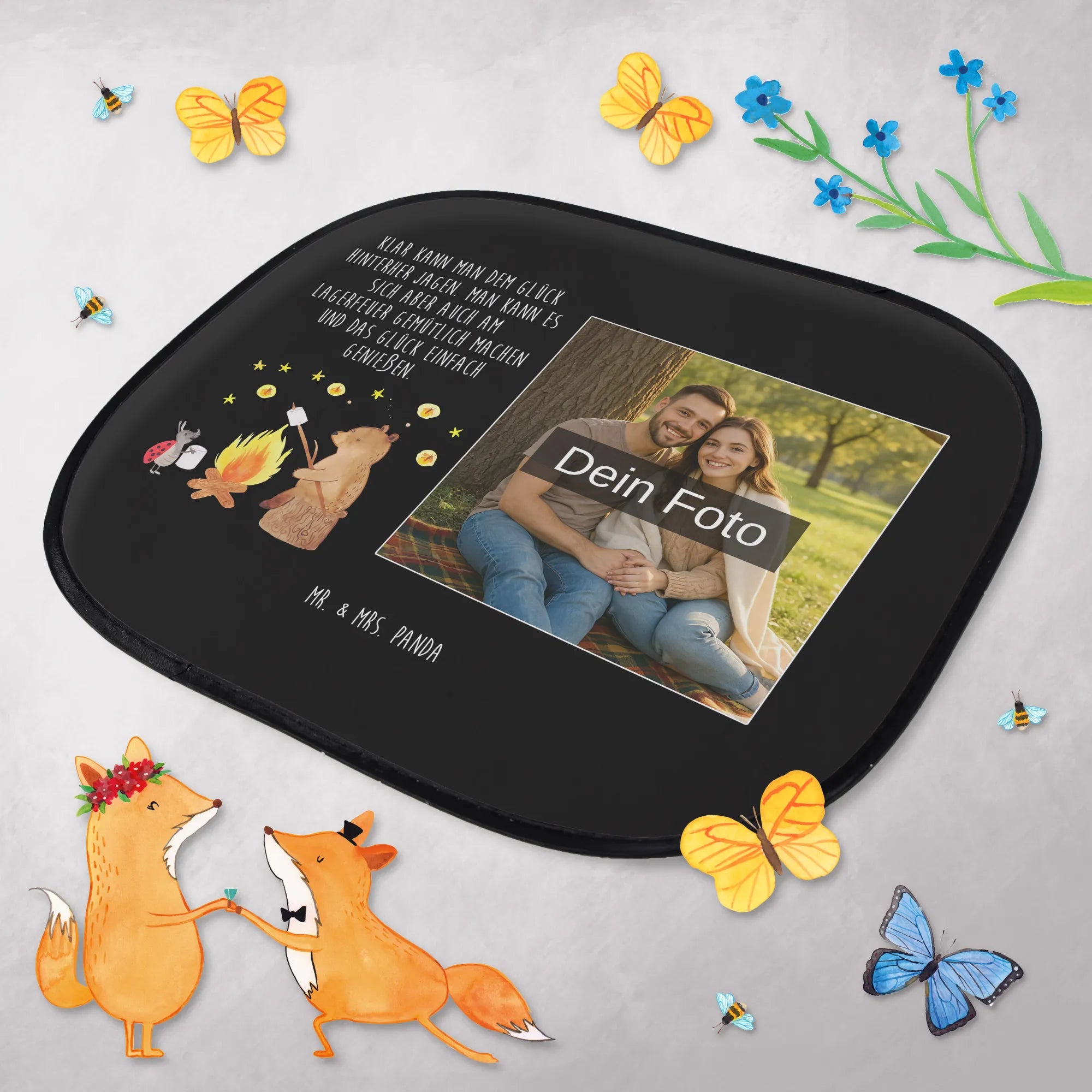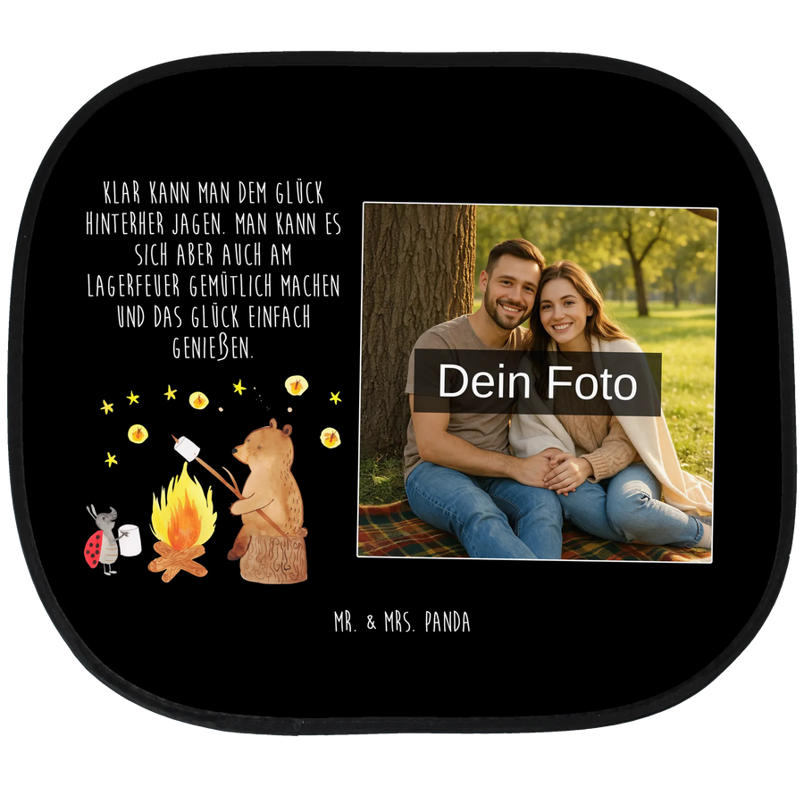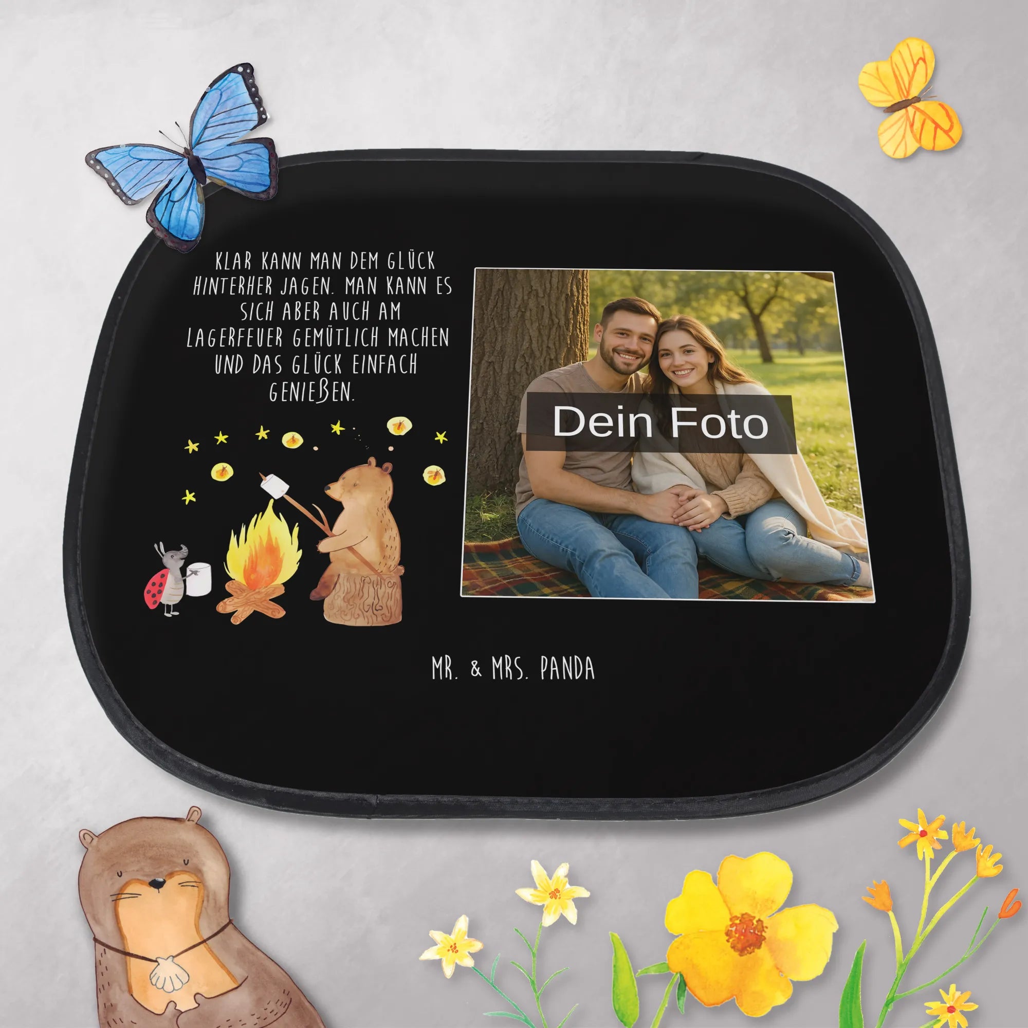 Personalisierbarer Foto Sonnenschutz Auto Bär & Marienkäfer Lagerfeuer