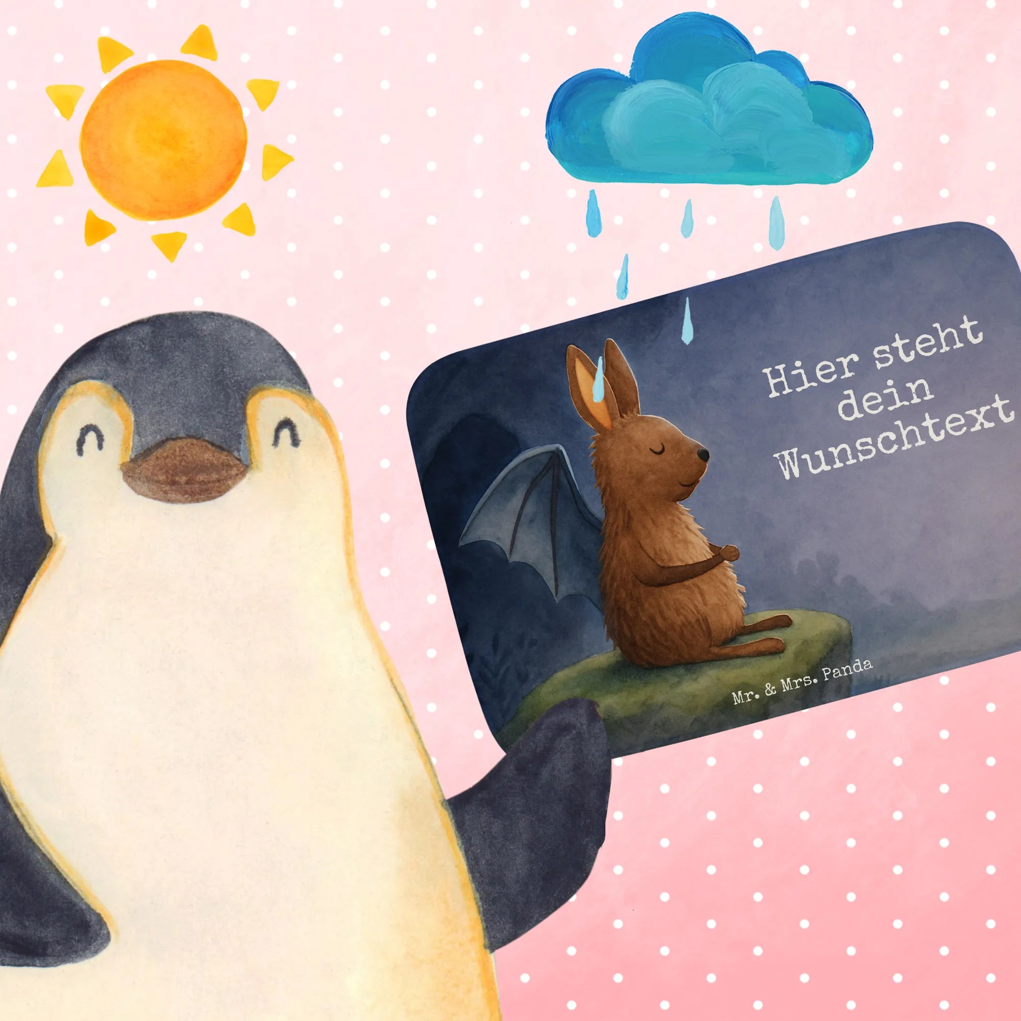 In einer Welt, die von Schnelligkeit und Effizienz getrieben wird, bietet unser Motiv „Fledermaus sitzend“ einen sanften Gegenpol. Umgeben von einer Aura der Gelassenheit, ruft die Fledermaus mit dem Spruch „Und manchmal vertrödelt man die Zeit, ohne sie sinnvoll zu nutzen. Auch mal schön...“ die schöne Kunst des Nichtstuns in Erinnerung. Dieses liebevoll gestaltete Motiv von Mr. & Mrs. Panda lädt dazu ein, die Schönheit des Lebens in all seinen Facetten zu genießen – und zu akzeptieren, dass Zeiten der Ruhe genauso ihren Platz haben wie die der Aktivität.