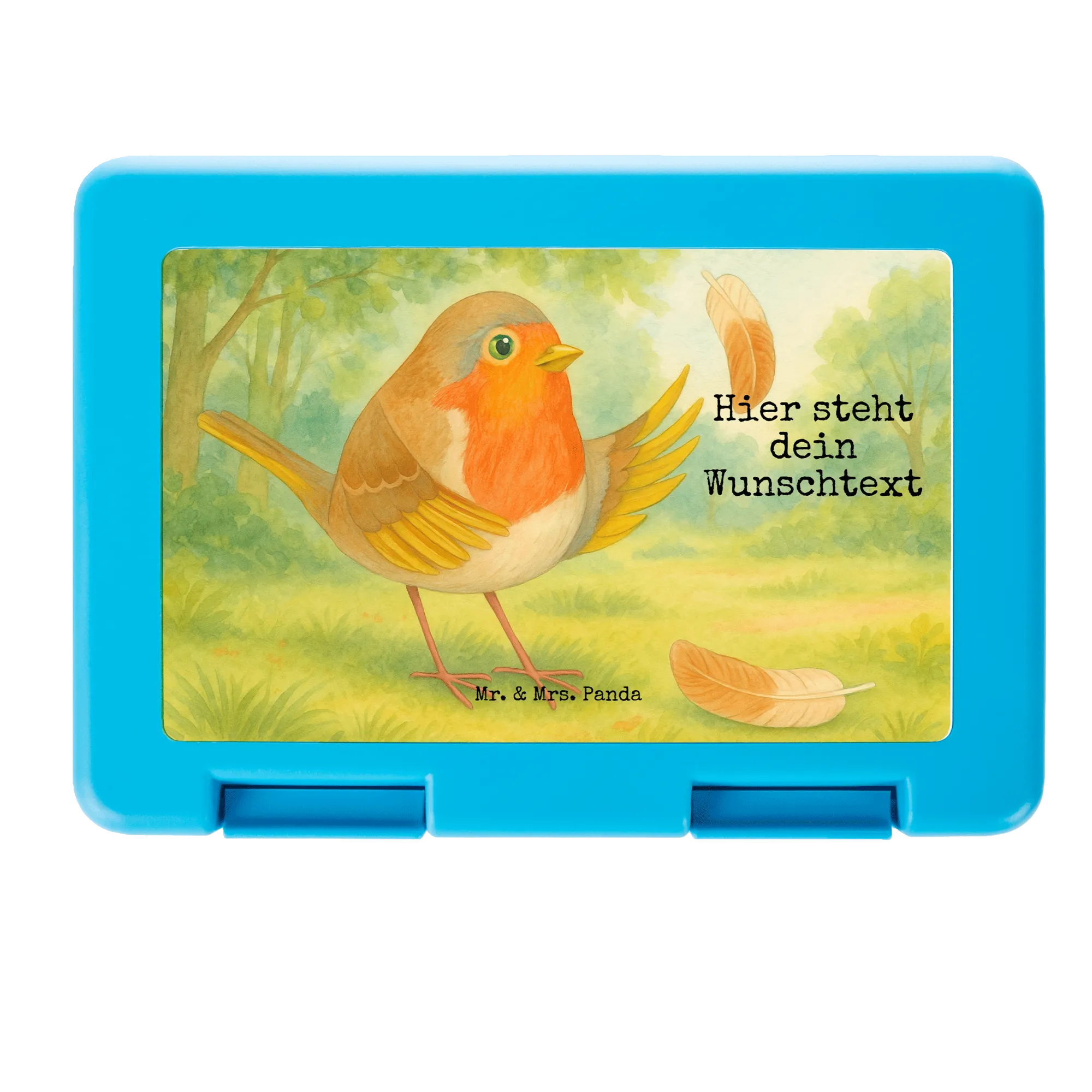 Personalisierte Brotdose Rotkehlchen Federn Design