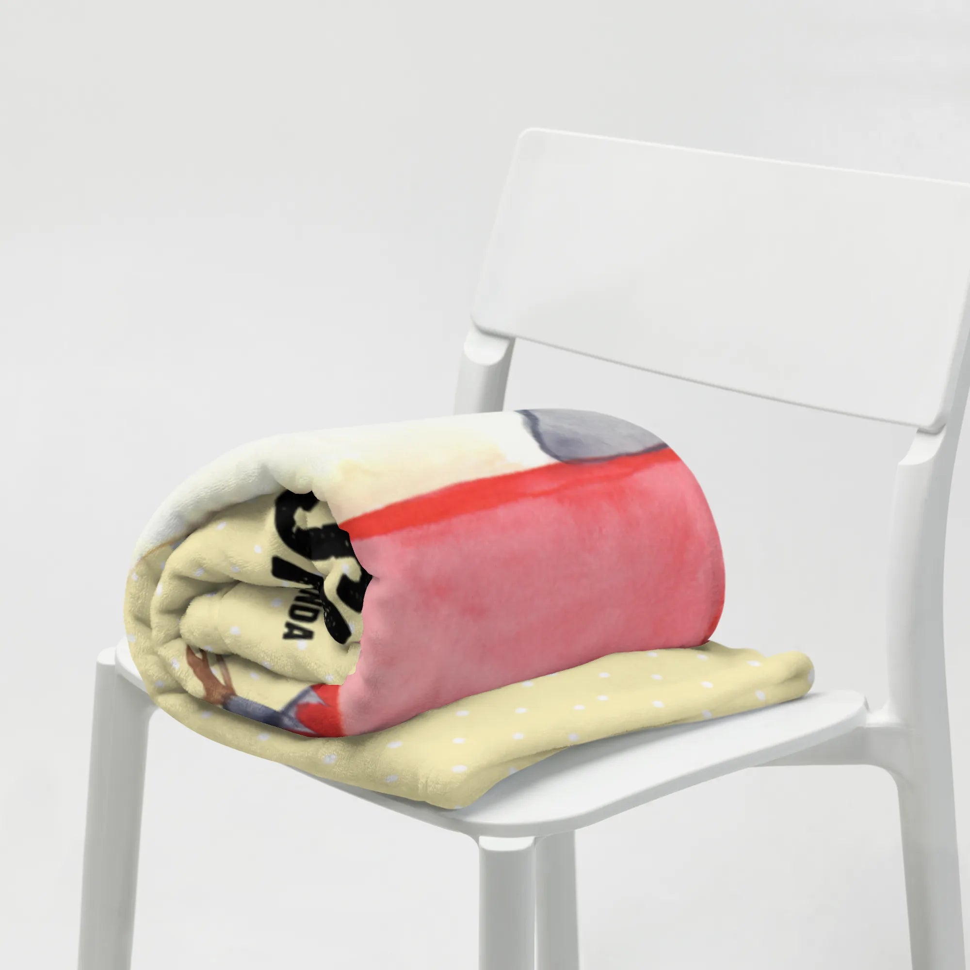 Mach deine Entspannungsmomente noch gemütlicher mit unserer personalisierten Decke von Mr. & Mrs. Panda! Diese Kuscheldecke XXL (1530 mm x 1530 mm x 5 mm) macht sich sowohl im Wohnzimmer als auch im Kinderzimmer hervorragend. Der hochwertige, weiche Stoff aus Kunstfaser umhüllt dich angenehm und die leuchtenden Farben sorgen für gute Laune. Ob beim Lesen, Fernsehen oder einfach beim Entspannen, diese Fleecedecke schenkt dir das perfekte Wohlfühlambiente. Mit deinem individuellen Namen oder Wunschtext wird sie zum Unikat. Die Decke ist hypoallergen, sodass sie auch für Allergiker geeignet ist. Besonders praktisch: Sie kann bei max. 30 °C in der Waschmaschine gewaschen werden. Denke daran, sie vor der ersten Nutzung zu waschen, damit du die beste Qualität genießen kannst! Hol dir den Kuscheltraum nach Hause!