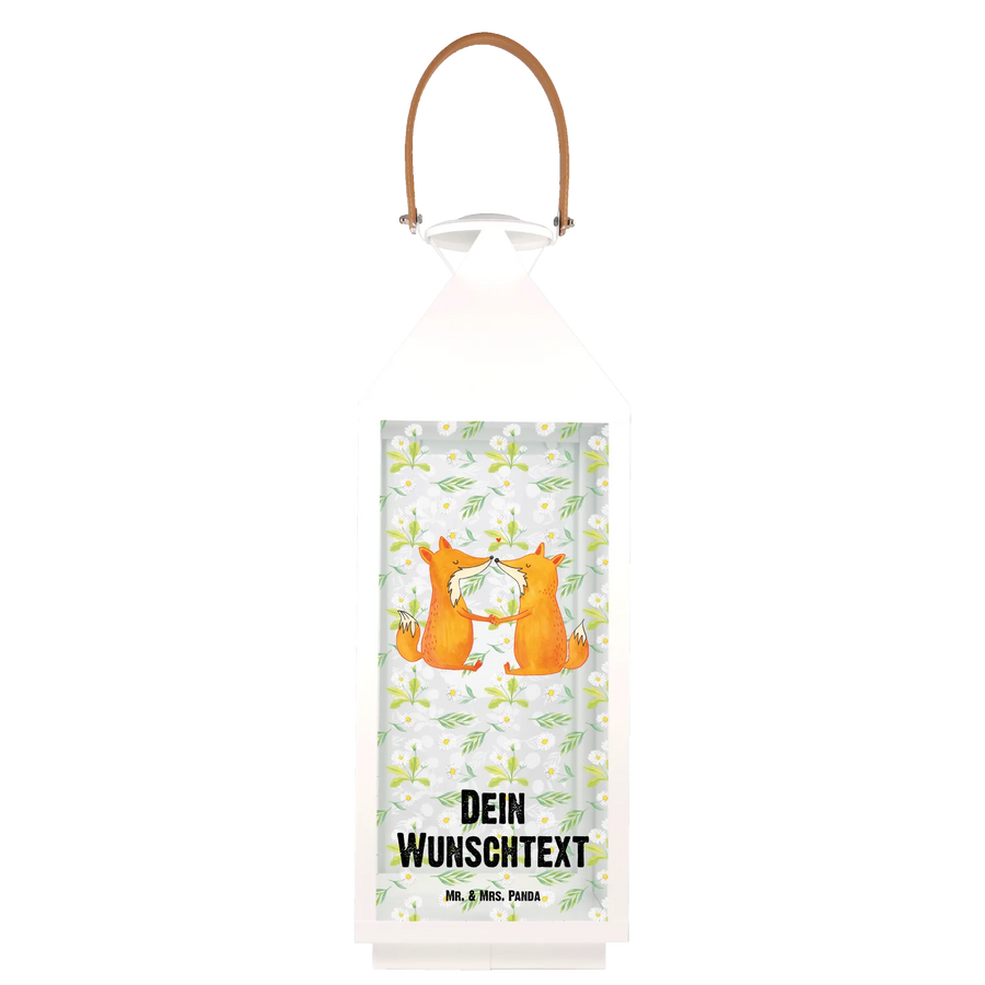 Die personalisierte Deko Laterne "Füchse Liebe" von Mr. & Mrs. Panda ist das perfekte Geschenk für all diejenigen, die das Besondere lieben. Sie vereint die Eleganz einer Gartenlampe mit der liebevollen Botschaft der Füchse, die Hand in Hand sitzen und eine unendliche Verbundenheit symbolisieren.