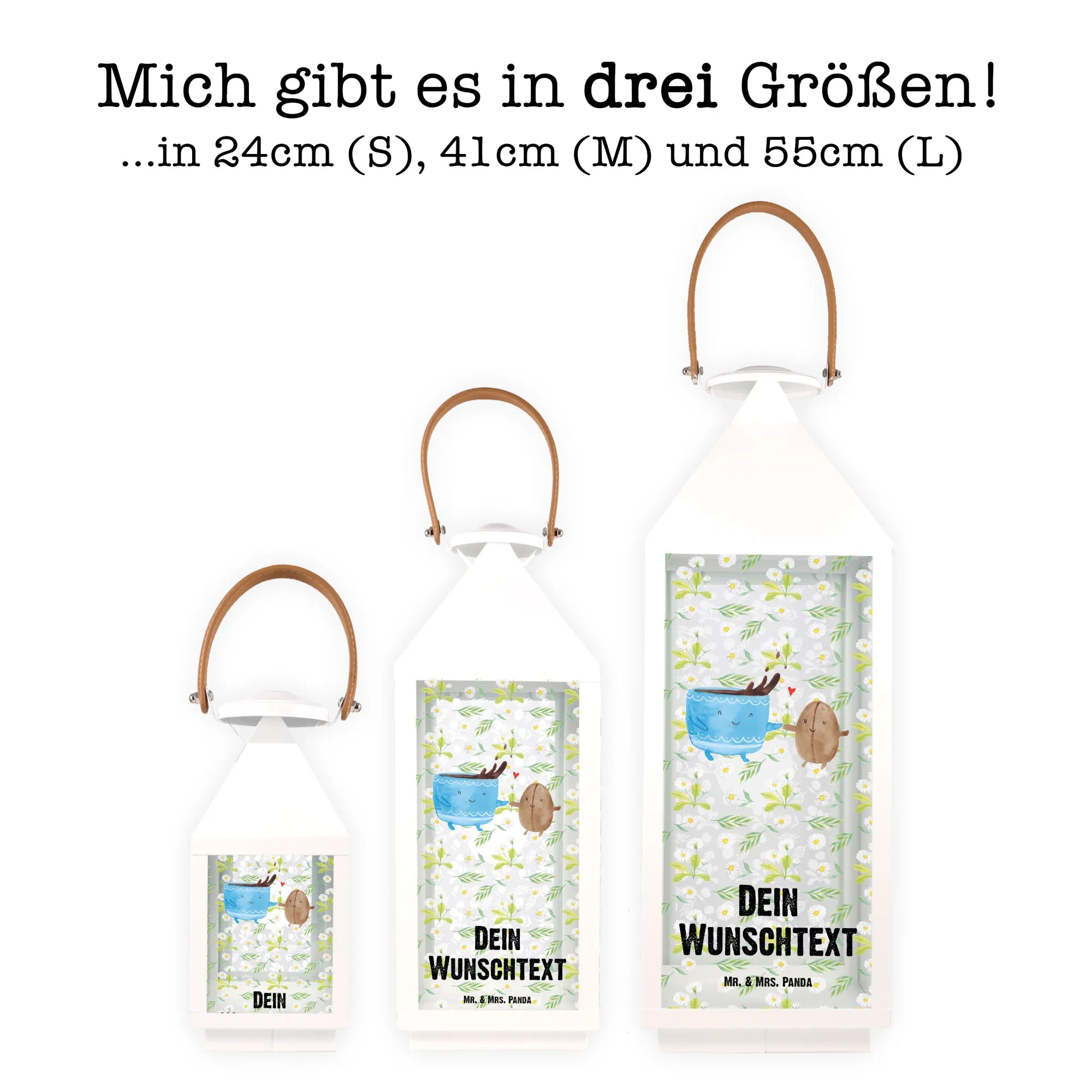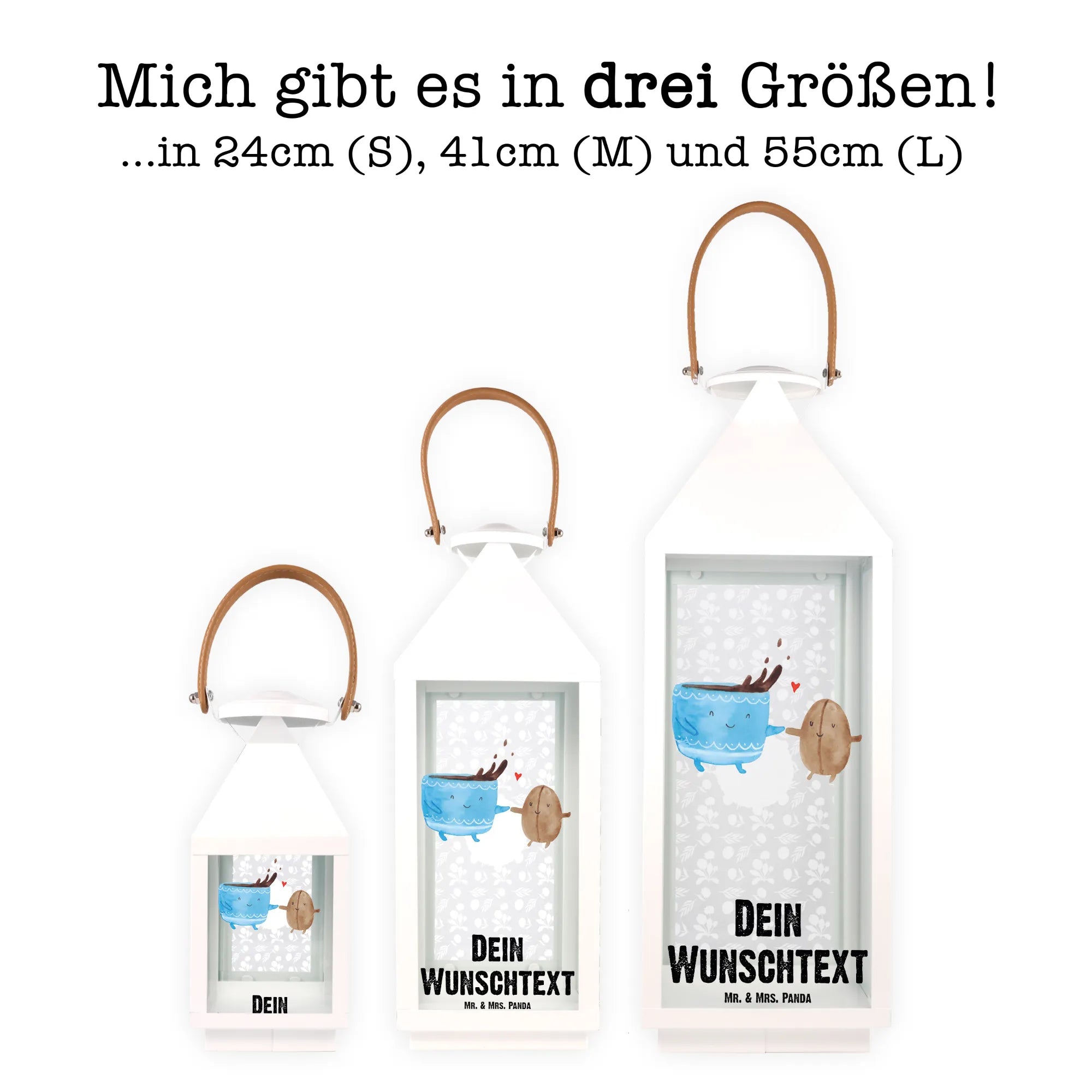 Schenke dir selbst oder deinen Liebsten ein Stück Freude mit dieser einzigartigen Deko Laterne, die nicht nur als Lichtquelle dient, sondern auch als wundervolles Dekorationselement in jedem Wohnraum. Sie erinnert uns daran, dass die kleinen Dinge im Leben häufig die größten Glücksmomente erzeugen. Die Kombination aus stilvollem Design, Personalisierung und dem fröhlichen Kaffeetassen-Motiv macht diese Laterne zu einem unvergesslichen Geschenk. Mach jeden Tag ein bisschen heller und bunter - mit der personalisierten Deko Laterne von Mr. & Mrs. Panda. Lass die Wärme des Lichts dein Herz erreichen!