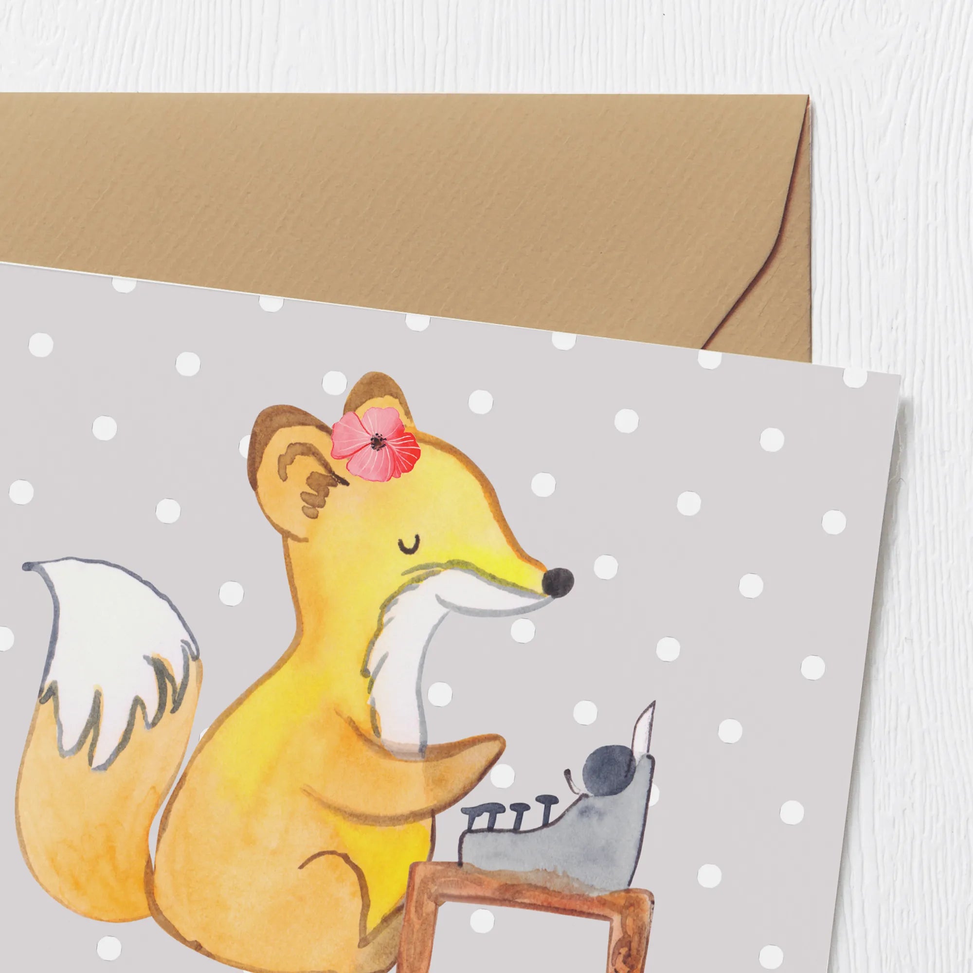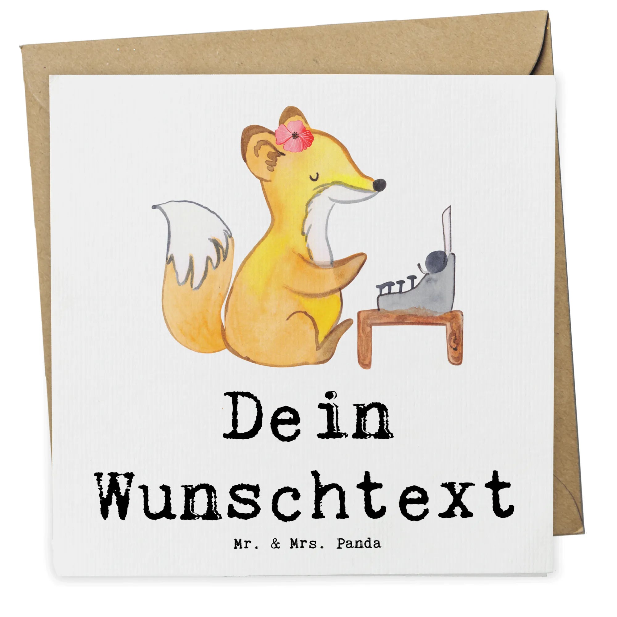 Deine Wünsche für den Text kannst du einfach anpassen und hinzufügen – so wird jede Karte zu einem individuellen Kunstwerk. Die Karte hat eine Größe von 140 mm x 140 mm und wird aus edlem 300 Gramm Karton gefertigt, der matt glänzend bedruckt ist. Die Vorderseite dieser Karte ziert ein süßer Fuchs, der mit Liebe und Aquarell-Technik von Mrs. Panda handgezeichnet wurde. Mit dem tollen Spruch „Du bist nur ein halber Mensch, wenn du keine Assistentin bist“ bringt die Karte sowohl Freude als auch Dankbarkeit zum Ausdruck.
