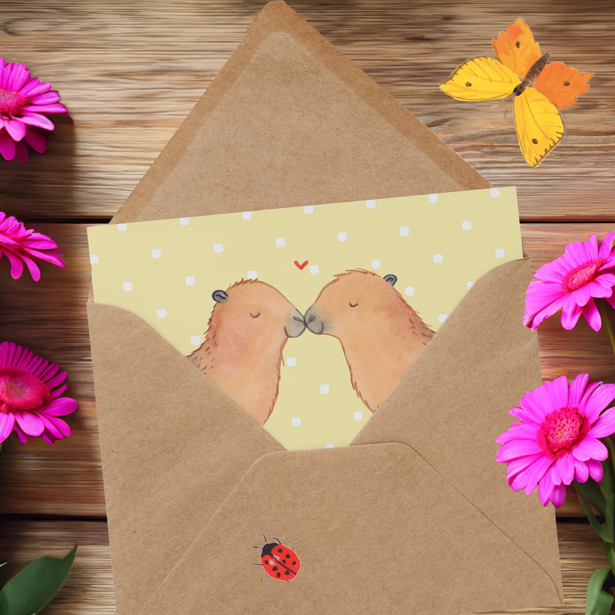 Verschenke Freude und Gute Laune mit unserem Capybara Liebespaar und mache jeden Anlass unvergesslich. Ideal für individuelle Grüße oder Glückwünsche von Herzen! Mit dieser Karte zeigst Du, dass Du wirklich an die große Liebe glaubst und dass jeder Tag einen besonderen Grund hat, gefeiert zu werden.