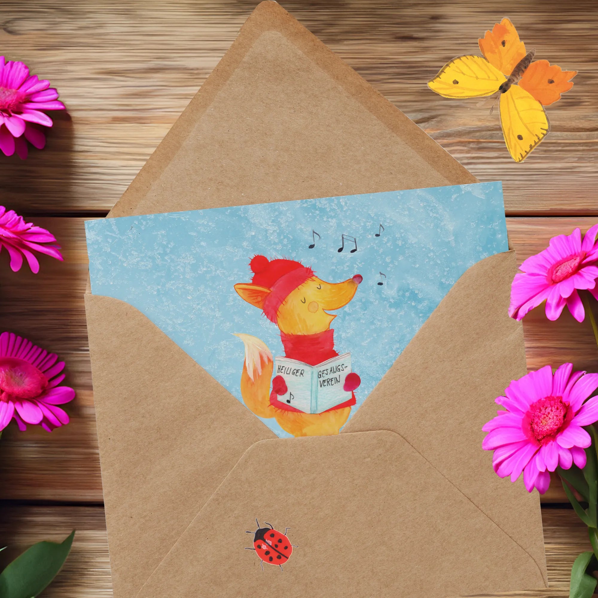 Die personalisierte Deluxe Karte "Fuchs Sänger" aus der Winter Kollektion von Mr. & Mrs. Panda ist der perfekte Gruß für die kalte Jahreszeit. Diese exquisite, quadratische Karte misst 140 mm x 140 mm und ist aus hochwertigem 300 Gramm Karton gefertigt. Die Vorderseite beeindruckt mit einer hochglänzenden Veredelung, die das fröhliche Fuchs-Motiv in warmen Farben zum Strahlen bringt. Der singende Fuchs in seiner roten Mütze und dem passenden Schal bringt sofort gute Laune und weihnachtlichen Spirit. Umgeben von musikalischen Noten und dem Liederbuch "Heiliger Gesangsverein" versprüht die Karte Freude und lädt ein, Weihnachtslieder zu trällern.