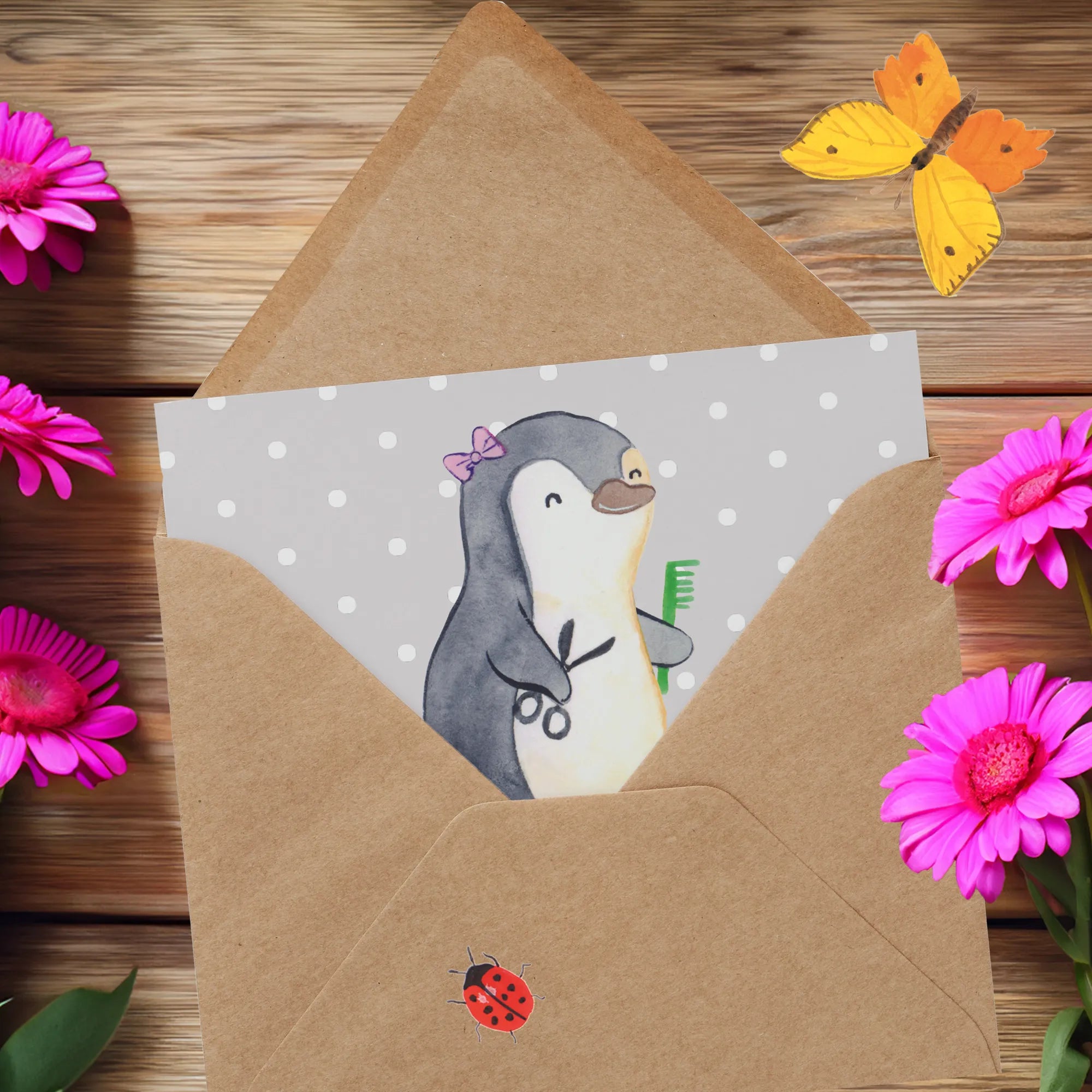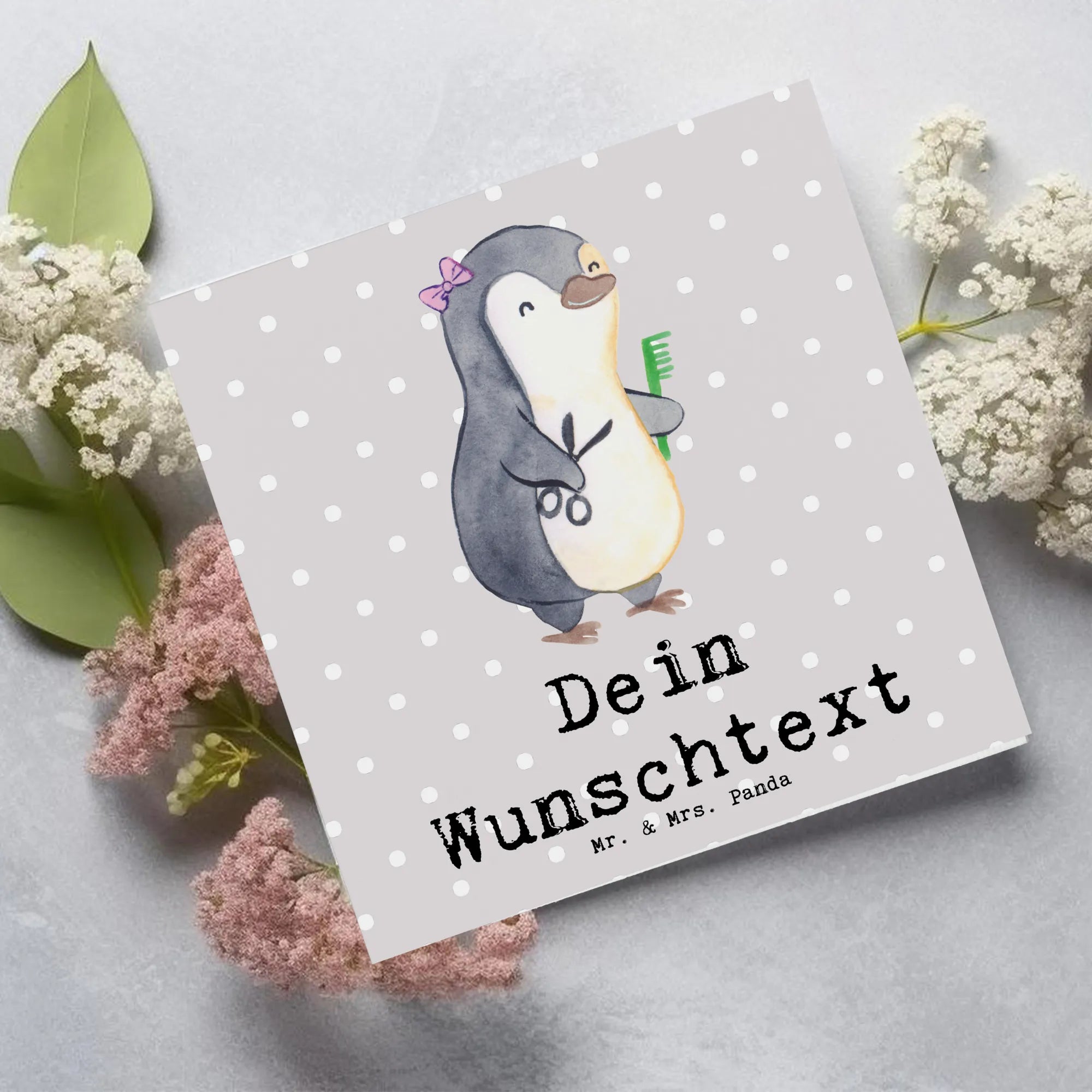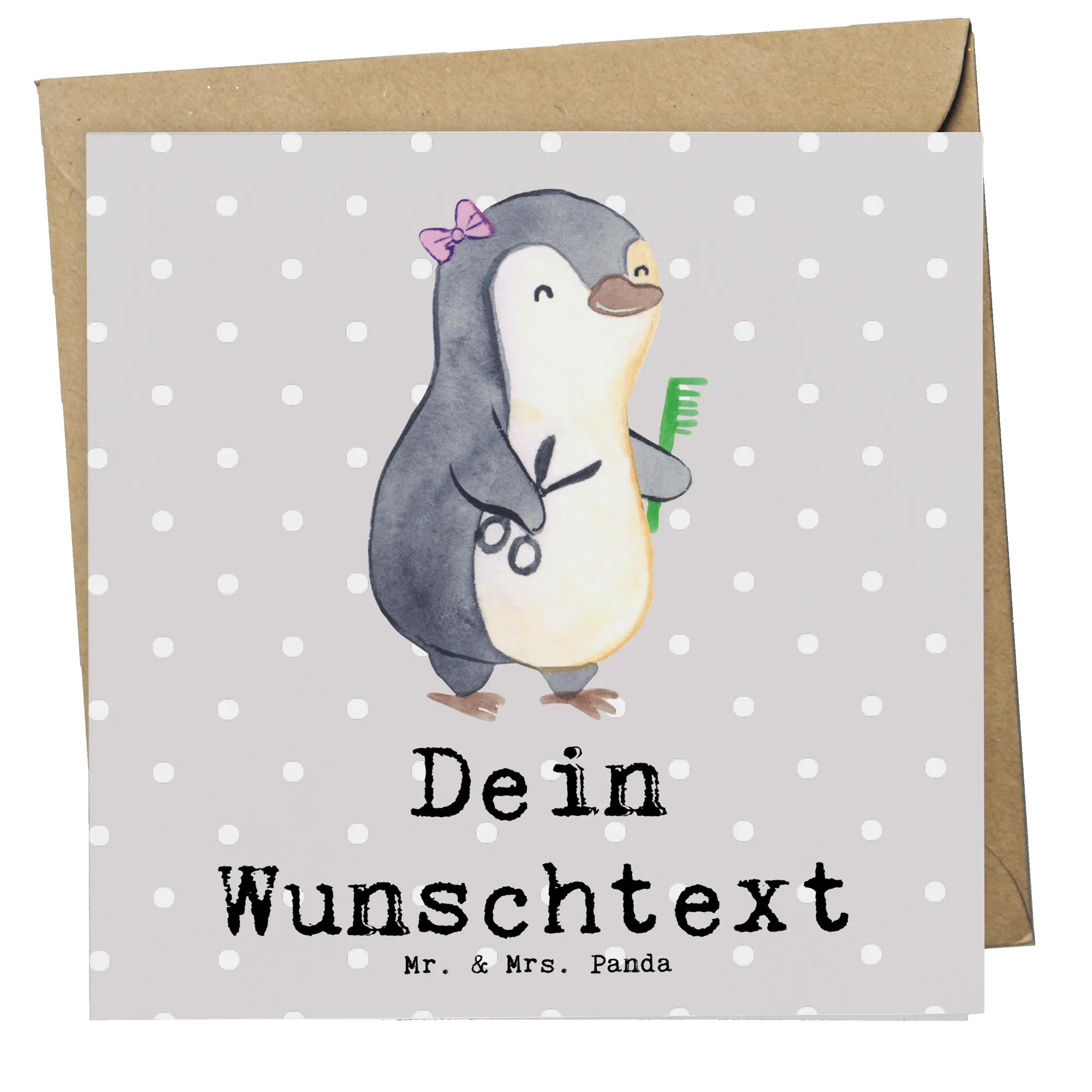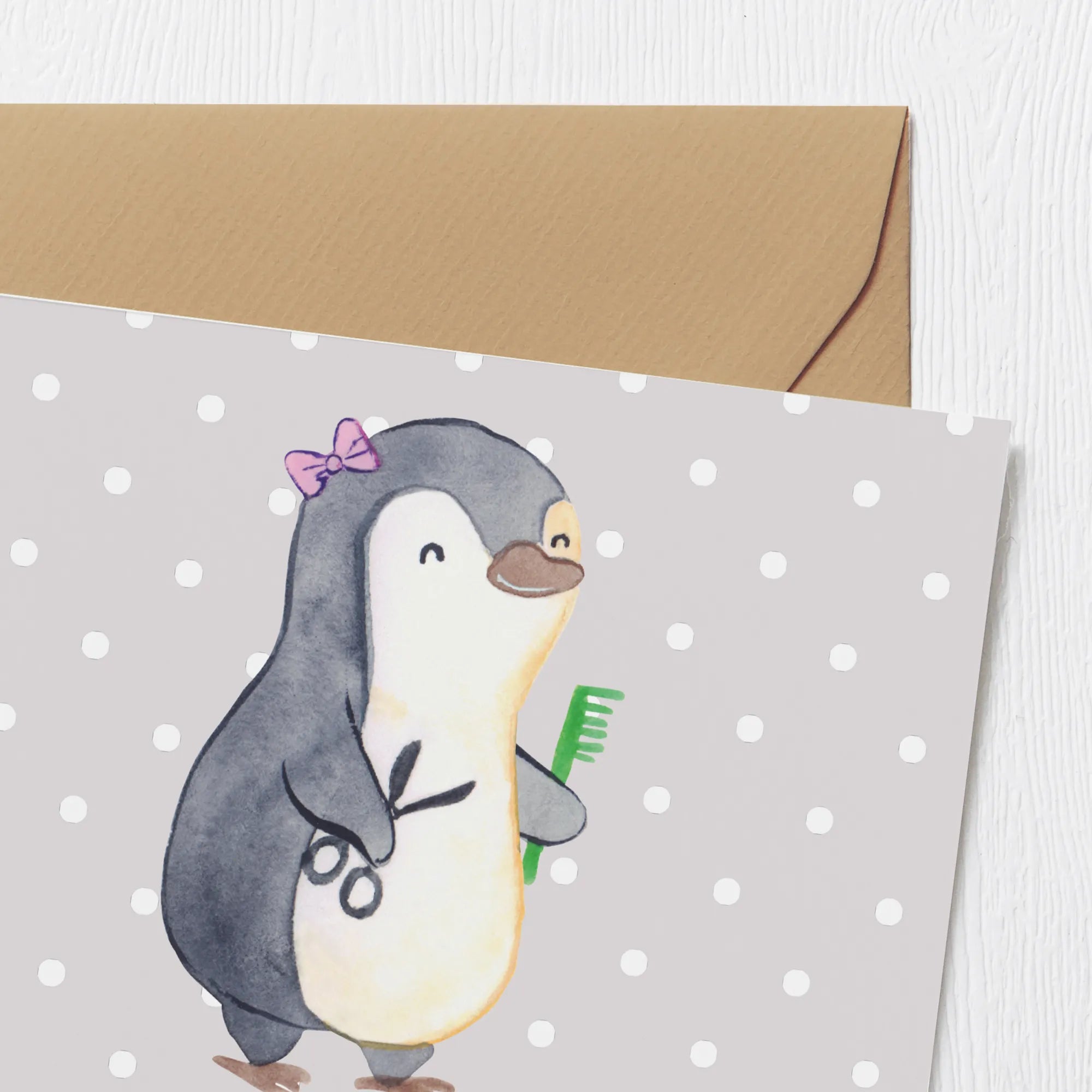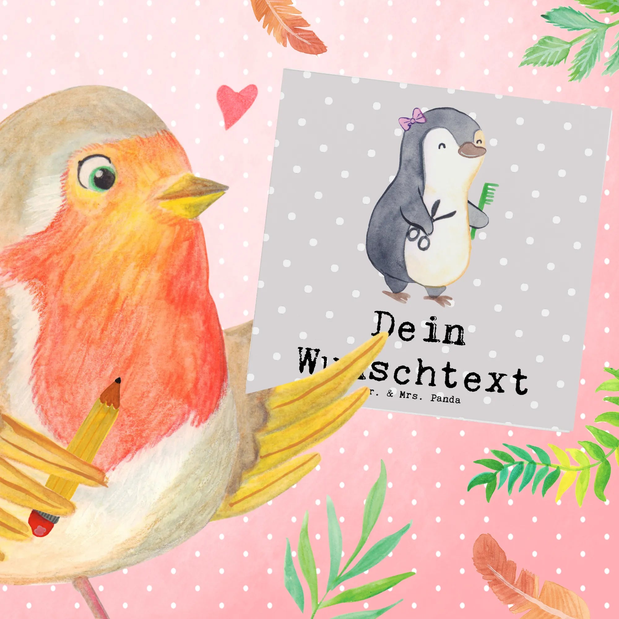Die personalisierte Deluxe Karte "Hairstylistin mit Herz" von Mr. & Mrs. Panda ist das perfekte Geschenk für alle Haarstylistinnen, Friseurinnen und Hairstylistinnen, die ihre Leidenschaft mit einem Hauch von Persönlichkeit feiern möchten. Mit einem charmanten Design, das einen niedlichen Pinguin darstellt, der glänzend illustriert ist, bringt diese Karte Freude in jede Haarstylistin.