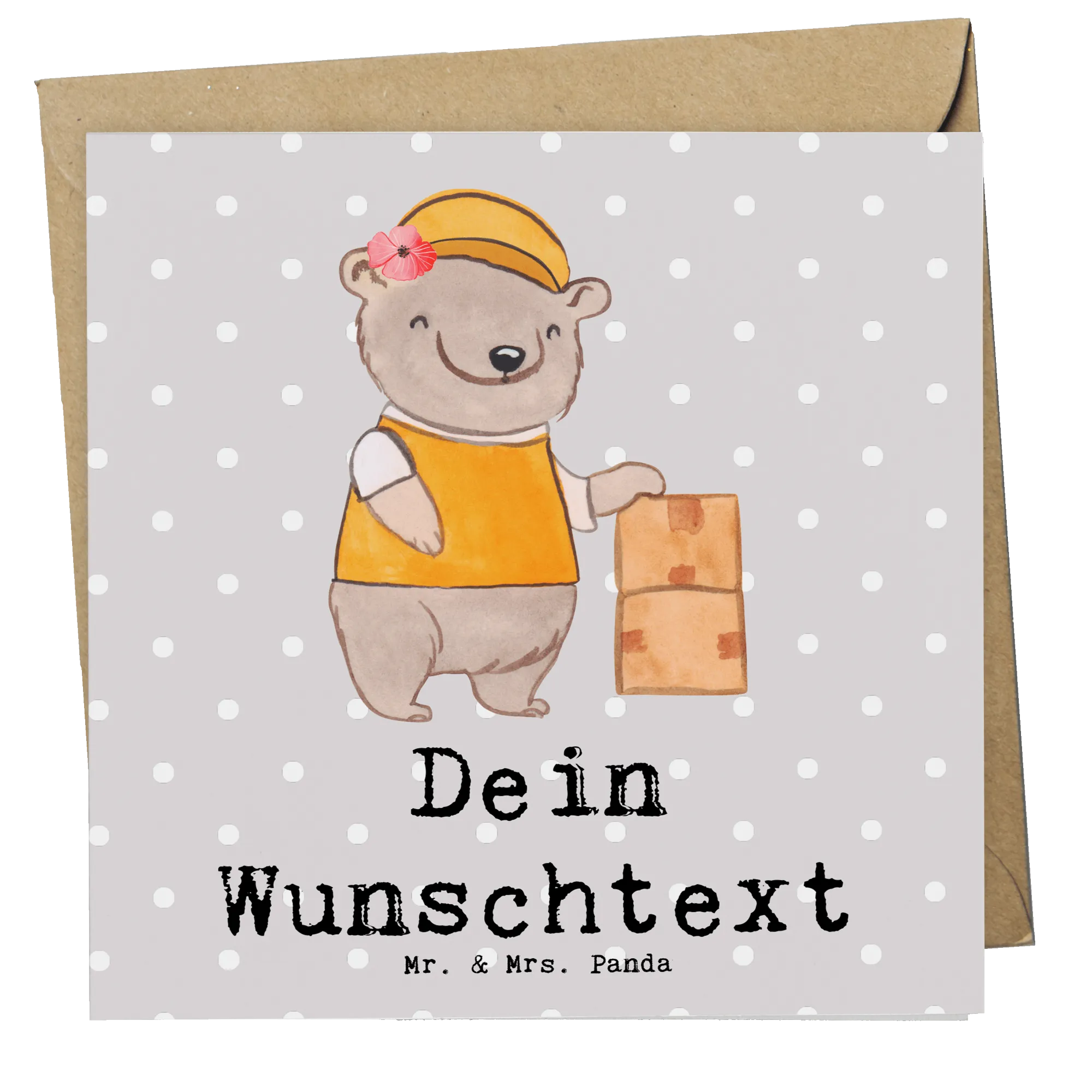 Die personalisierte Deluxe Karte "Lagerarbeiterin mit Herz" von Mr. & Mrs. Panda ist nicht nur eine einzigartige Grußkarte, sondern ein liebevolles Geschenk, das jedem Lagerarbeiter, jeder Lagerarbeiterin und jedem Lagerverwalter eine Freude bereitet. Mit einem charmanten, handgezeichneten Motiv zeigt die Karte eine süße Bärendame im orangefarbigen Helm, die bereit ist, ihre harte Arbeit zu würdigen.