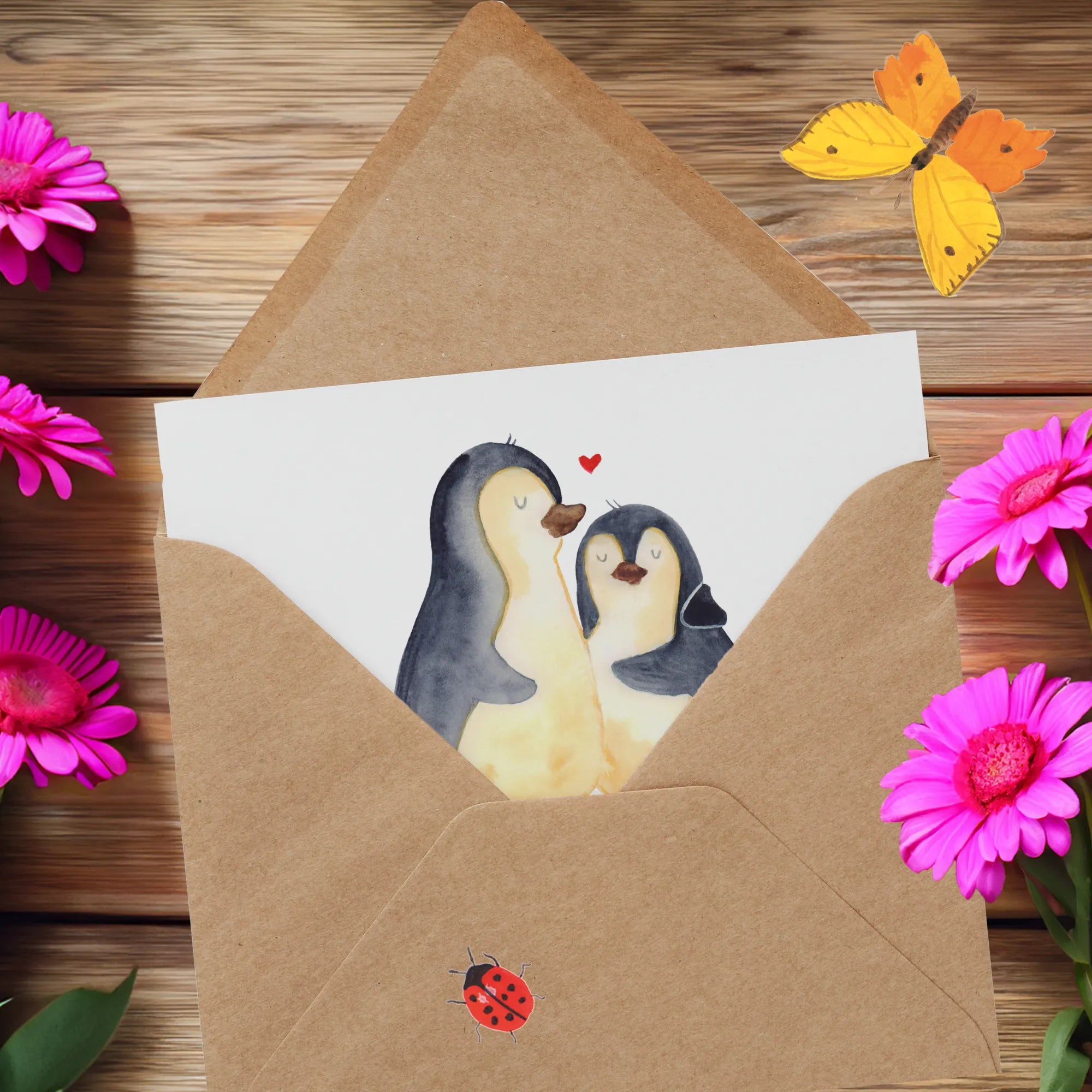 Diese liebevoll gestaltete Grußkarte macht jeden Anlass ganz besonders. Egal ob zum Valentinstag, Jahrestag, als Hochzeitskarte oder einfach als Liebesgeschenk, sie bringt garantiert ein Lächeln auf die Lippen deiner Liebsten. Die Karte zeigt zwei süße Pinguine, die sich innig aneinander kuscheln, umgeben von einem kleinen roten Herz. Einfach perfekt als Liebesbeweis oder als Mitbringsel für zwischendurch!