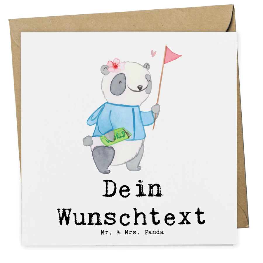 Ob zum Geburtstag, zur Beförderung, für ein Jubiläum oder als Abschiedsgeschenk, diese Karte ist der perfekte Begleiter für jeden Anlass. Die liebevoll gestaltete Illustration mit dem süßen Panda zeigt eine Reiseleiterin, die fröhlich einen Städteplan in der Hand hält. Der Spruch "Du bist nur ein halber Mensch, wenn du keine Reiseleiterin bist." unterstreicht die Bedeutung des Berufs und sorgt für ein Lächeln auf den Lippen der Beschenkten.