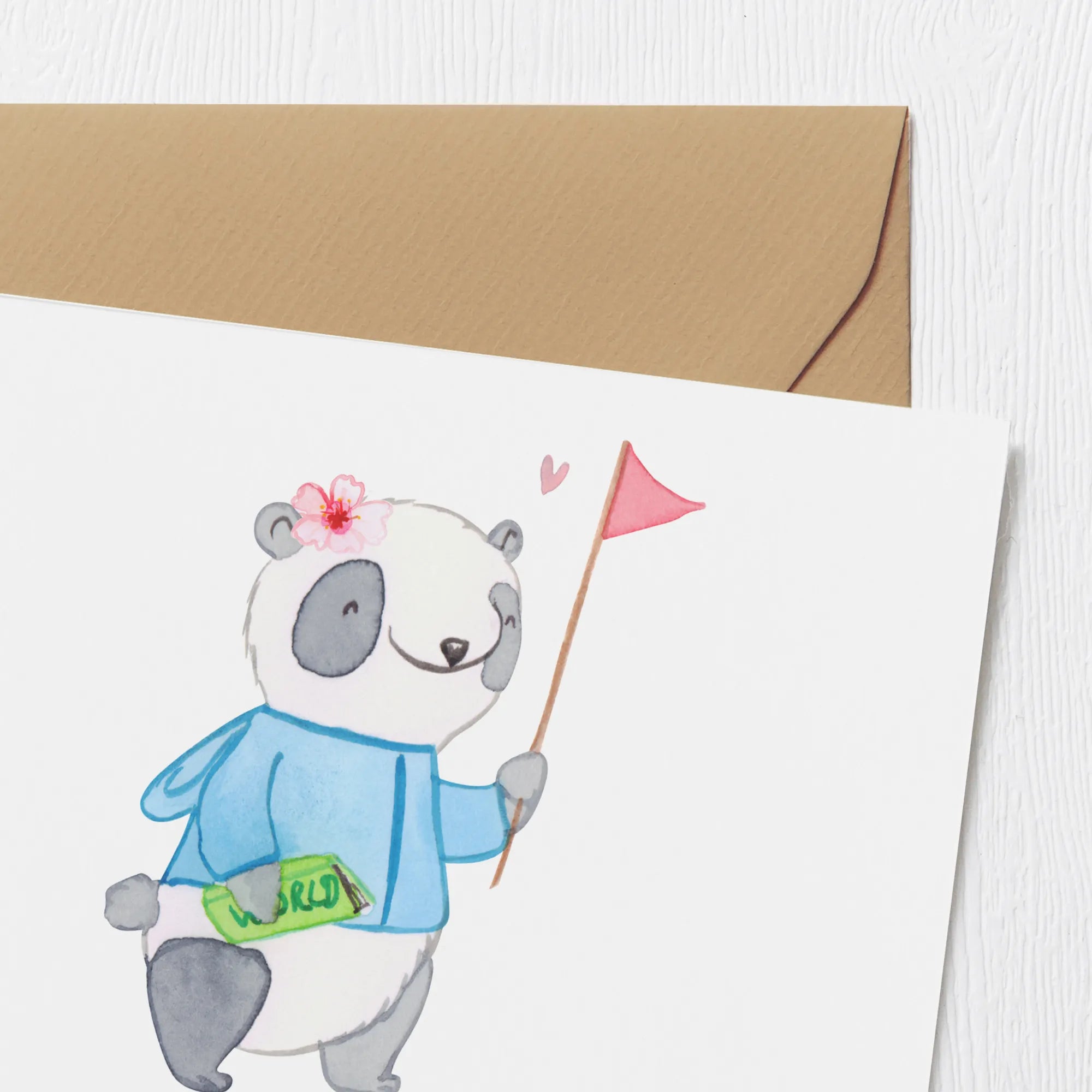 Die personalisierte Deluxe Karte "Reiseleiterin mit Herz" von Mr. & Mrs. Panda ist das ideale Geschenk für alle Reiseleiterinnen, die ihre Leidenschaft für das Reisen und Entdecken mit anderen teilen.