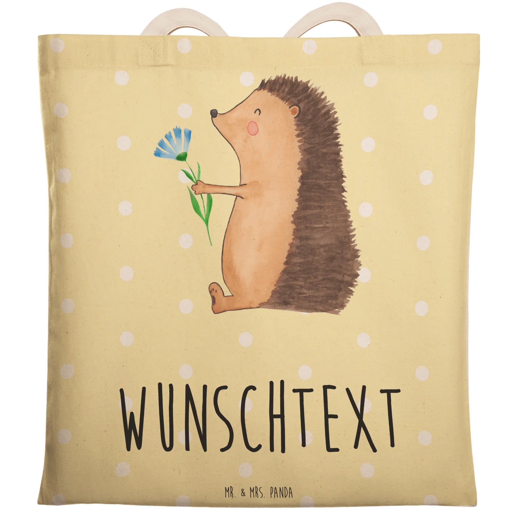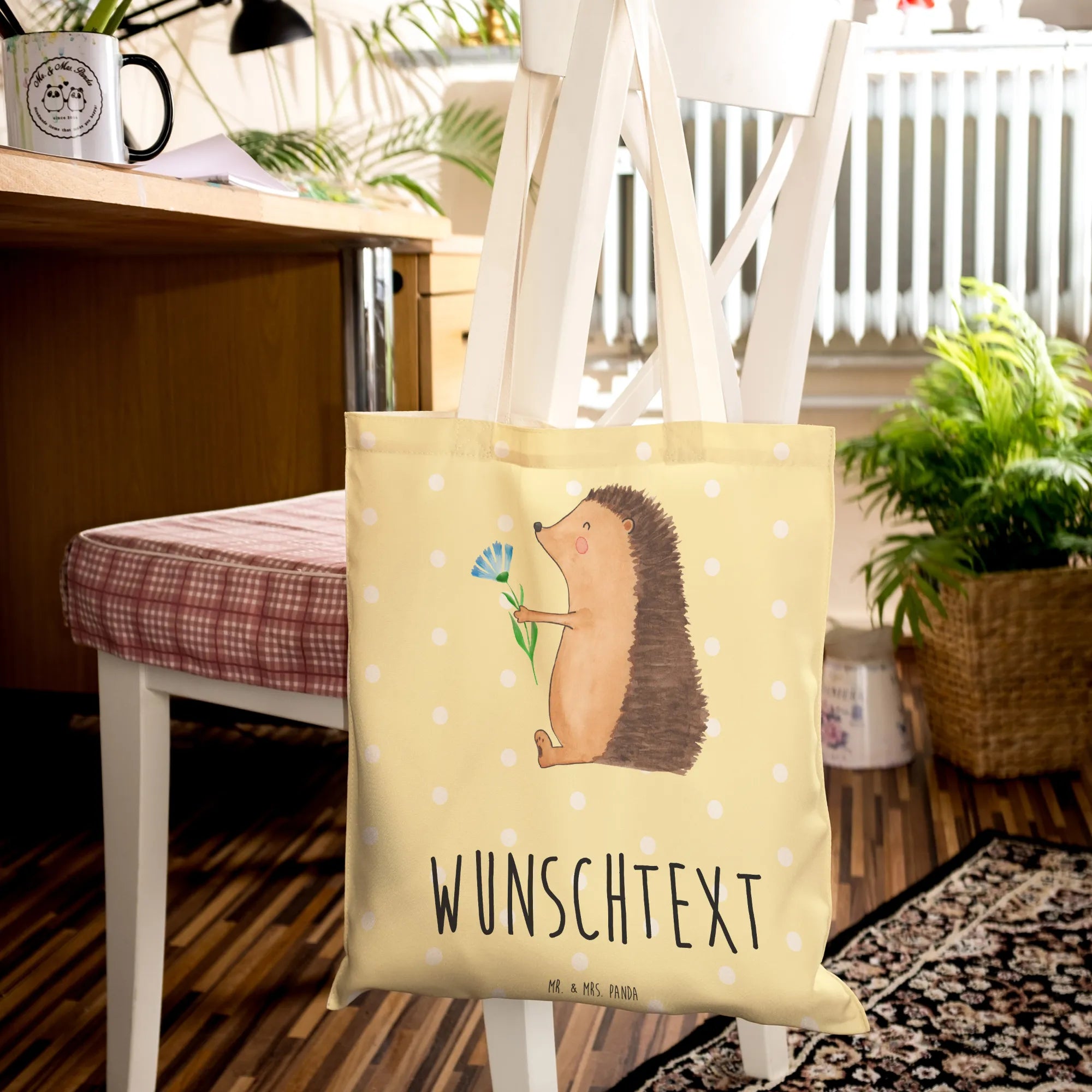 Die personalisierte Einkaufstasche "Igel mit Blume" aus der liebevollen Small World Kollektion von Mr. & Mrs. Panda ist das perfekte Geschenk für jeden Anlass und jeden, der gute Laune verspüren möchte.