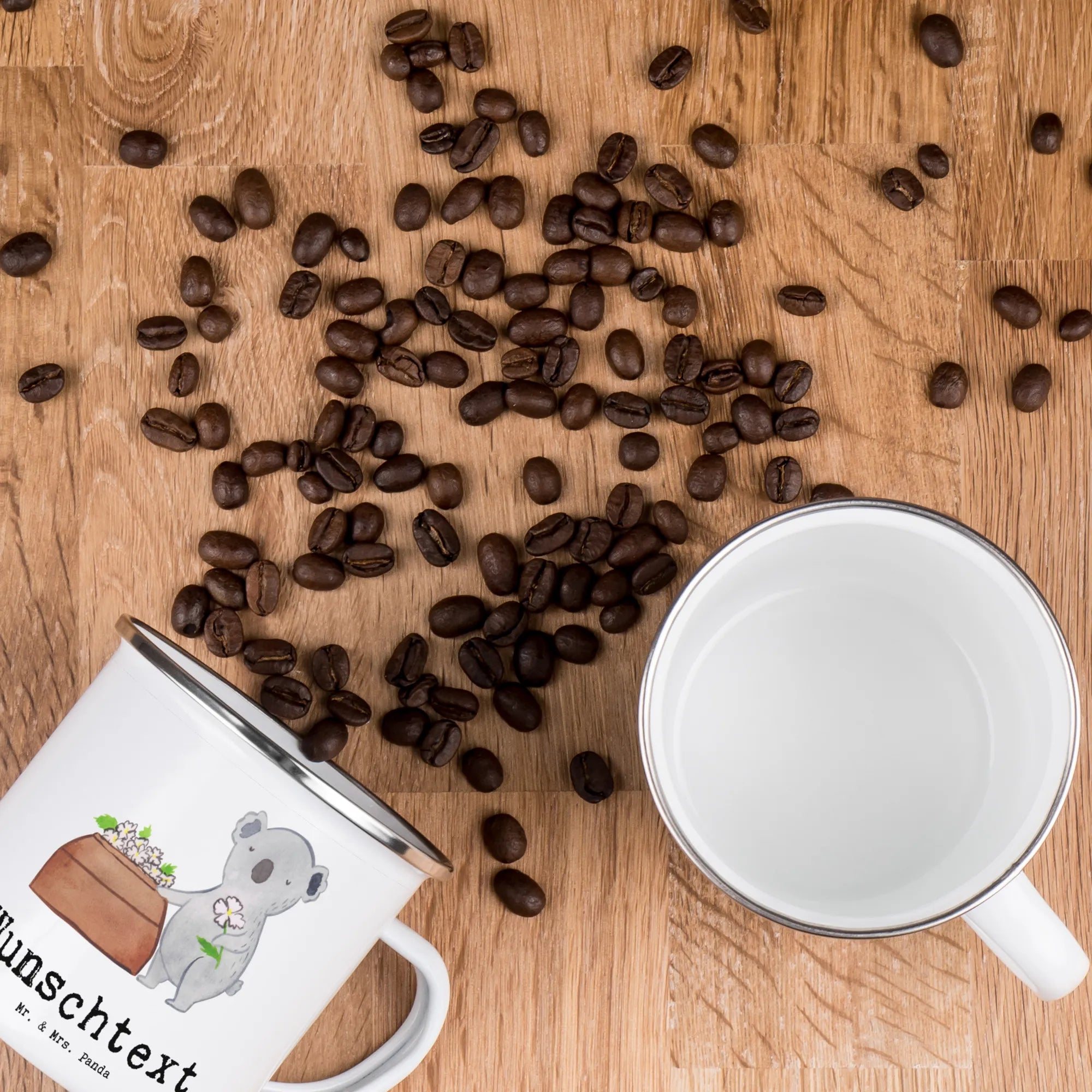Mit einem liebevoll gestalteten Motiv zeigt die Tasse einen niedlichen Koala, der respektvoll vor einem Sack steht, auf dem Blumen liegen – eine liebevolle Hommage an all die Bestatter, die so viele Menschen in schweren Zeiten begleiten. Diese Emaille Tasse ist nicht nur ein hübsches Accessoire, sondern auch super praktisch! Mit einer Füllmenge von 300 ml ist sie ideal für Deinen Kaffee, Tee oder heiße Schokolade beim nächsten Campingausflug oder beim entspannten Picknick im Park.
