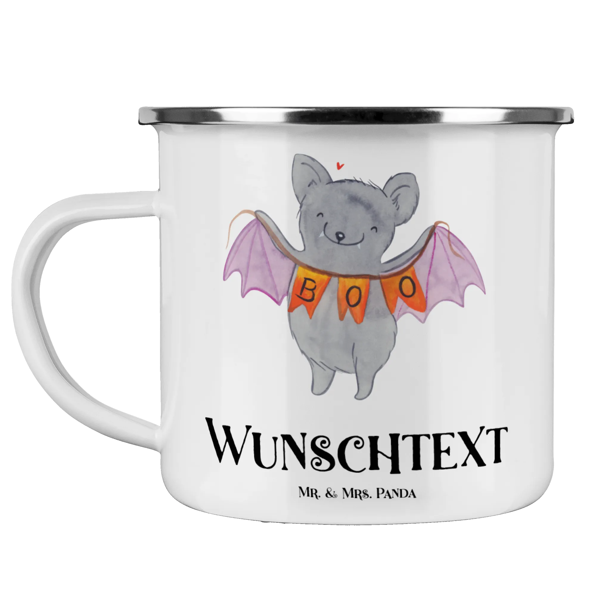 Zauberhafte Personalisierte Emaille Tasse „Fledermaus Boo“ von Mr. & Mrs. Panda
