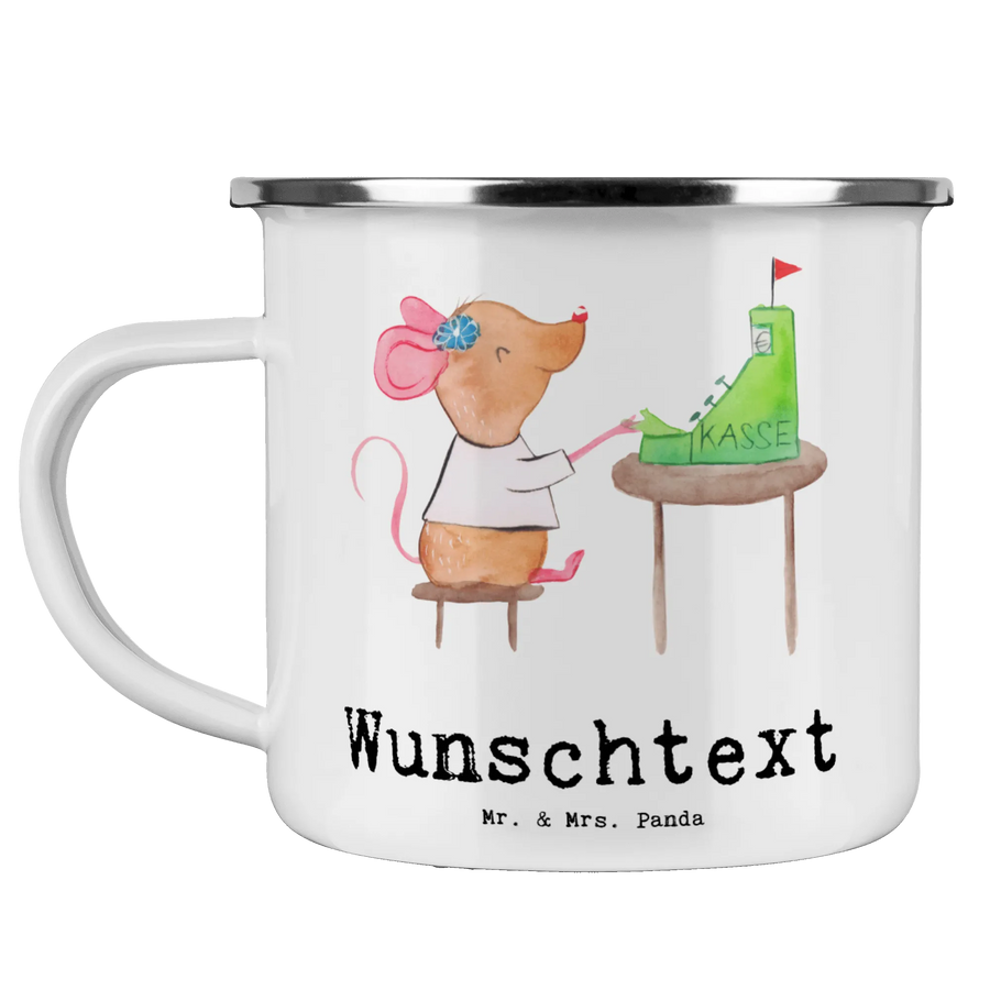 Personalisierte Emaille Tasse Kassenwartin mit Herz – Mr. & Mrs. Panda
