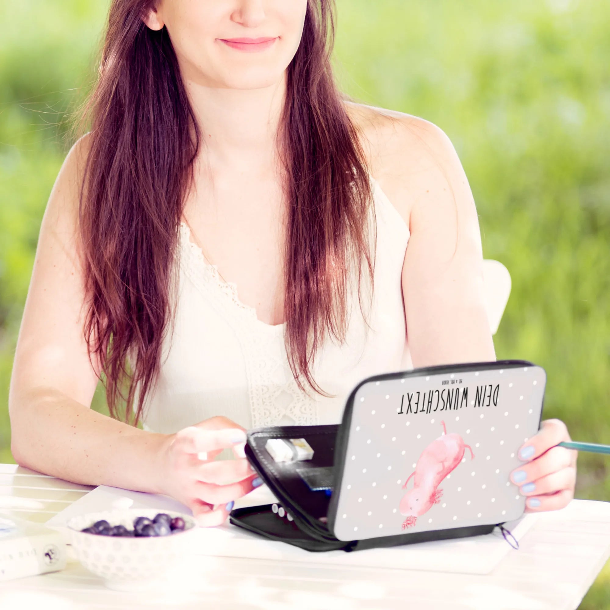 Die personalisierte Federmappe "Axolotl tanzt" aus der liebevollen Kollektion von Mr. & Mrs. Panda ist das ideale Geschenk für jeden Schulanfänger oder Schulkinder, die gerne im Unterricht kreativ sind. Egal, ob zur Einschulung oder einfach als hübsches Geschenk im Schulranzen – diese schöne Stiftetasche begeistert durch ihr fröhliches Design und die Möglichkeit, sie mit deinem Wunschnamen zu personalisieren!