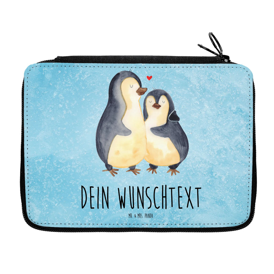 Personalisierte Federmappe Pinguin umarmend - Eisblau