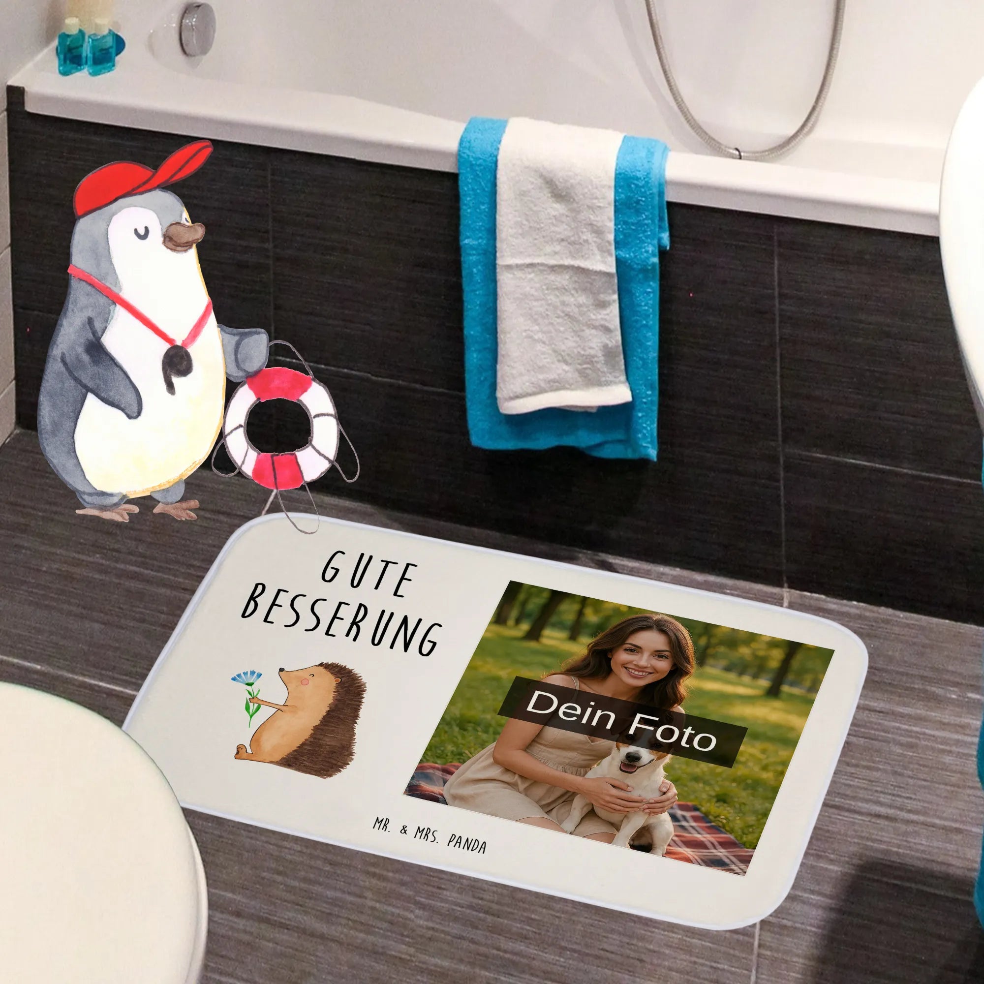 Mach dein Badezimmer zu einem ganz besonderen Ort mit unserer personalisierten Foto Badematte von Mr. & Mrs. Panda! Diese Badematte ist nicht nur ein praktischer Helfer, sondern auch ein echter Hingucker. Mit einer Größe von 590 mm x 400 mm sorgt sie für ein angenehmes Gefühl an den Füßen. Über die flauschige Premium Kunstfaser kannst du dein Lieblingsfoto drucken lassen, sodass du jeden Tag ein Stück deiner schönsten Erinnerungen beim Betreten des Badezimmers genießen kannst. Die besondere Antirutsch Gummibeschichtung macht die Matte besonders sicher, sodass du dir keine Sorgen um Ausrutscher machen musst. Die liebevolle Gestaltung und die hohe Saugfähigkeit der Matte machen sie zu einem Must-Have für jedes Badezimmer. Beachte beim Hochladen deines Fotos, dass es in hoher Qualität vorliegt und gut ins Bildformat passt. Dein Badezimmer wird mit dieser personalisierten Matte nicht nur sichtbarer, sondern auch einladender. Pflege sie einfach bei 30°C in der Waschmaschine und genieße den Komfort, den sie dir bietet!