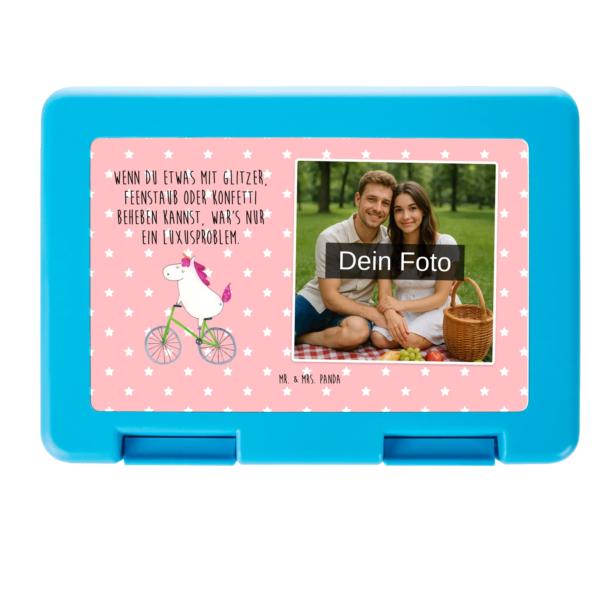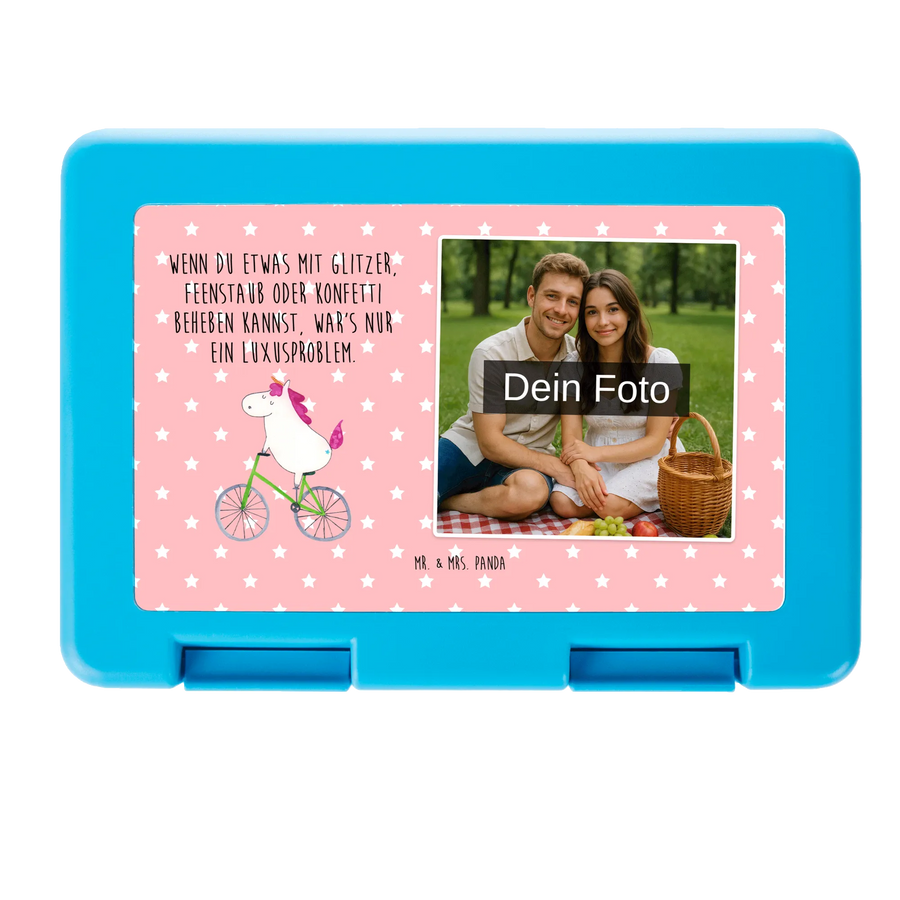 Personalisierte Foto Brotdose Einhorn Radfahrer