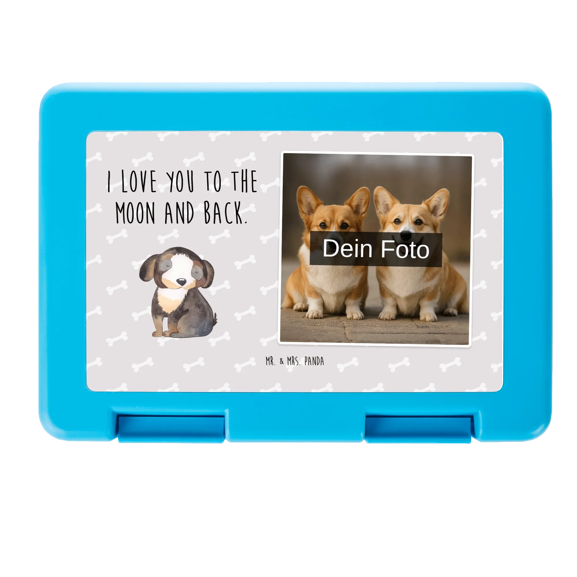 Personalisierte Foto Brotdose Hund Entspannen - Grau Pastell