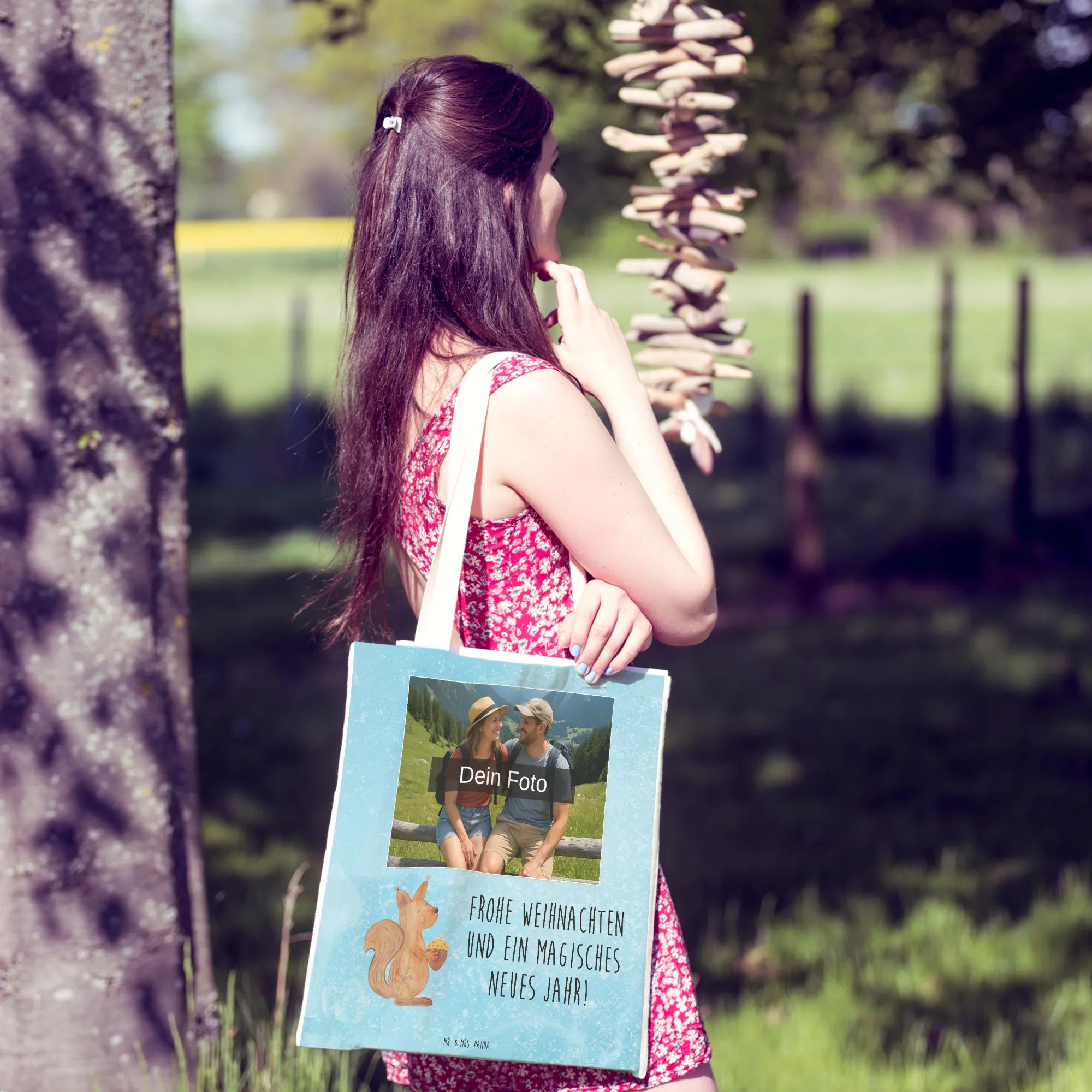 Personalisierte Foto Einkaufstasche Eichhörnchen Weihnachten