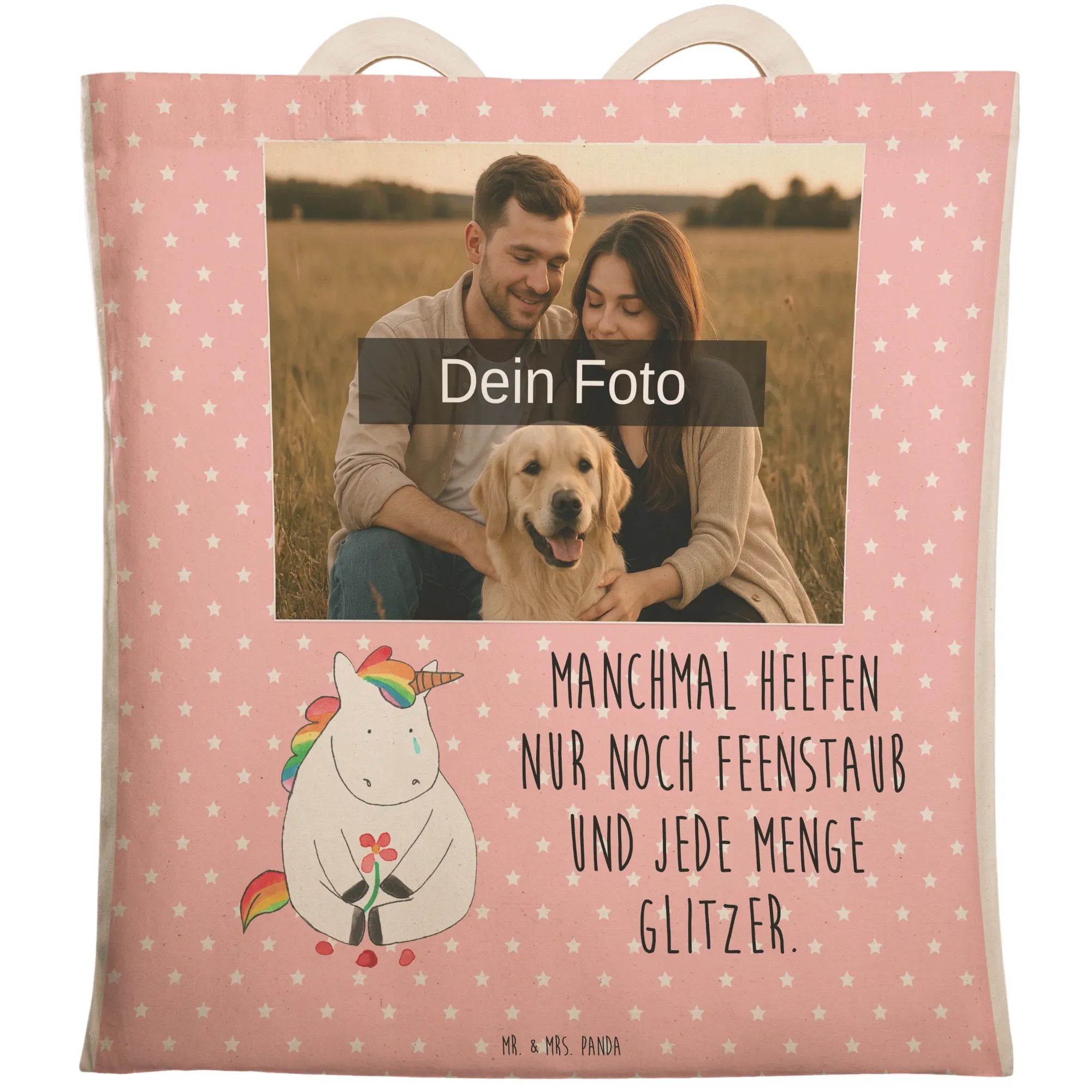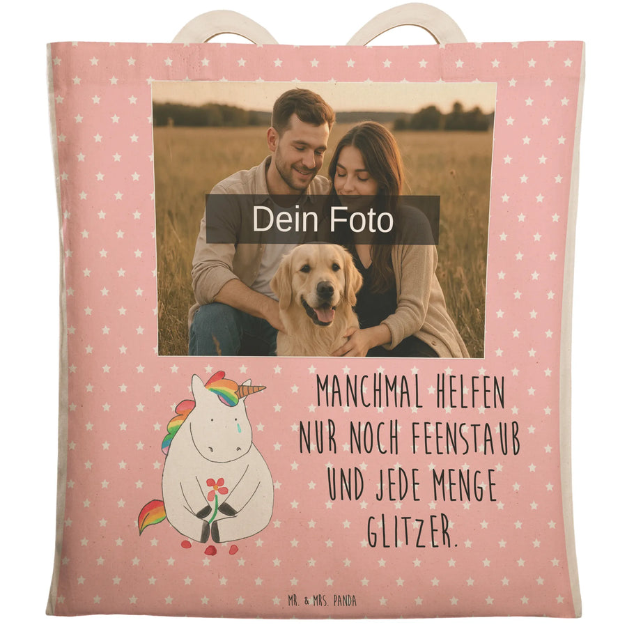 Personalisierte Foto Einkaufstasche Einhorn Traurig