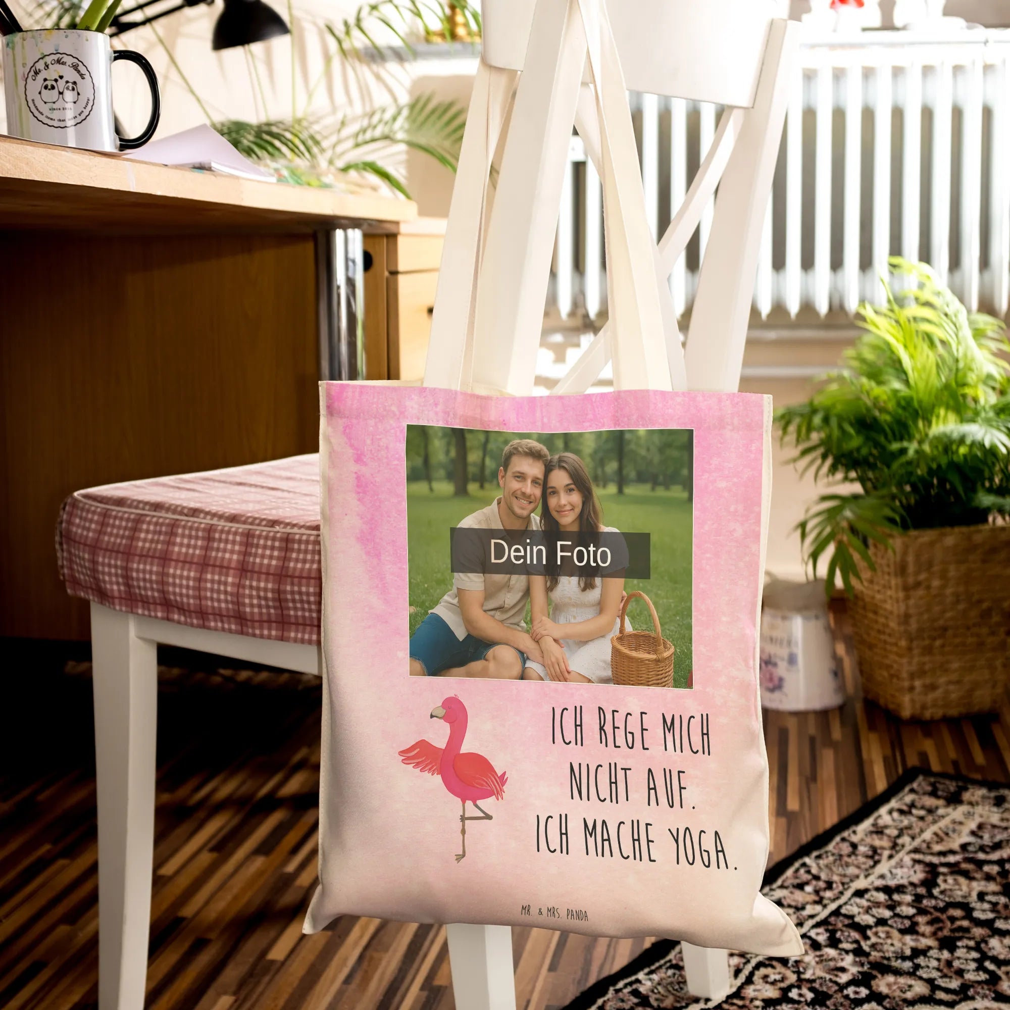 Personalisierte Foto Einkaufstasche Flamingo Yoga