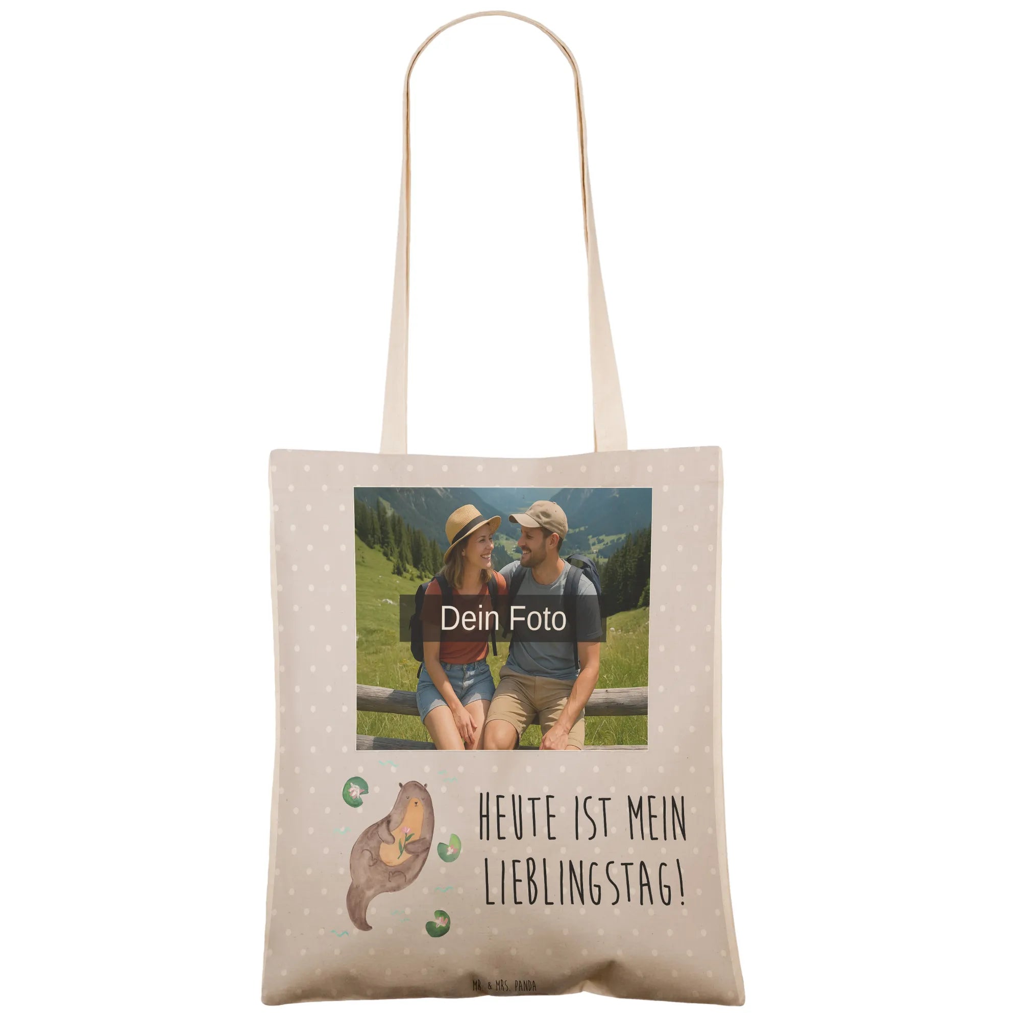 Mach deinen Einkauf zu einem besonderen Erlebnis mit der personalisierten Foto Einkaufstasche von Mr. & Mrs. Panda! Diese stilvolle Tasche misst 420 mm x 400 mm und ist aus langlebiger Kunstfaser gefertigt. Sie bringt süße Motive und Sprüche in dein Leben und bietet die Möglichkeit, dein Lieblingsfoto hochzuladen. So wird dein Einkauf einzigartig! Achte darauf, dass dein Bild in einer hohen Auflösung vorliegt, damit alles klar und deutlich dargestellt wird. Diese Tasche ist nicht nur besonders praktisch, sie ist auch robust, schmutzabweisend und einfach zu reinigen. Wir empfehlen eine sanfte Handwäsche, um die Langlebigkeit der Tasche zu garantieren. Perfekt für deine täglichen Einkäufe oder als Geschenk für deine Liebsten – hol dir deine individuelle Tasche von Mr. & Mrs. Panda!
