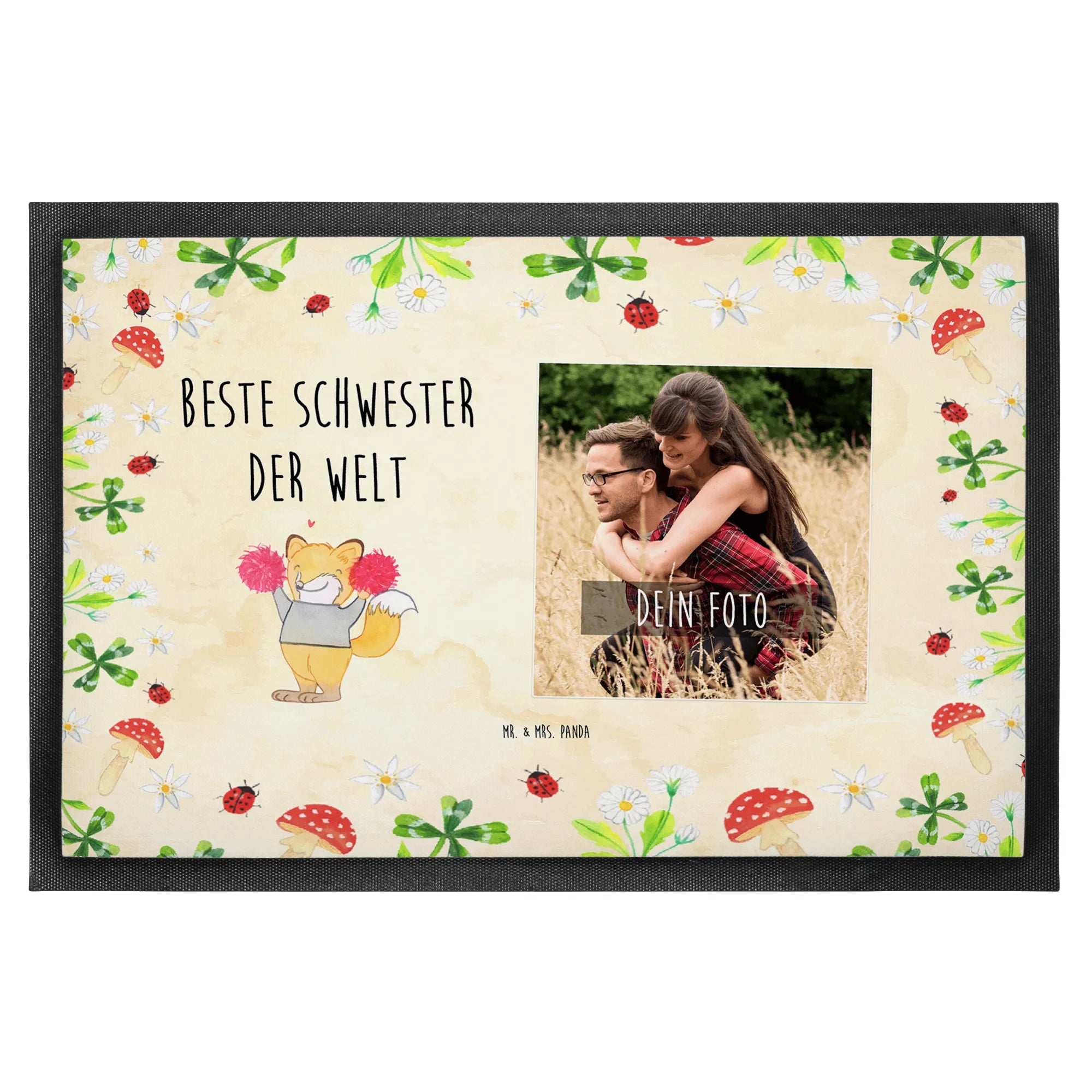 Die personalisierte Foto Fußmatte mit dem süßen Fuchsmotiv "Beste Schwester der Welt" von Mr. & Mrs. Panda ist das perfekte Geschenk, um deiner Schwester zu zeigen, wie viel sie dir bedeutet. Egal ob zum Geburtstag, als Dankeschön oder einfach nur so – diese Fußmatte wird ihr Herz höher schlagen lassen!