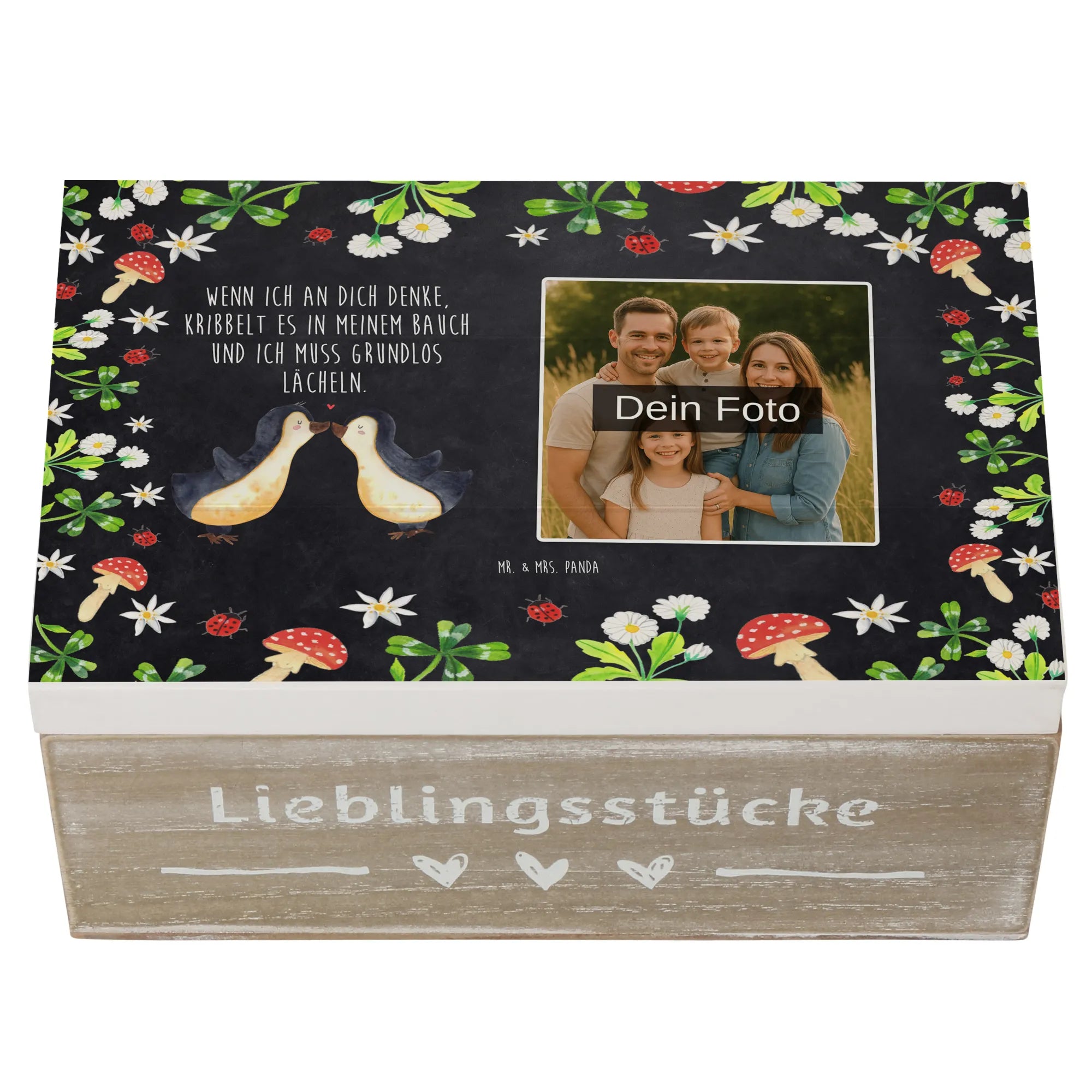 Die personalisierte Foto Holzkiste von Mr. & Mrs. Panda ist das perfekte Geschenk für jeden Anlass, ob zum Valentinstag, Jahrestag oder Hochzeitstag. Mit dem wunderschönen Motiv der Pinguine, die sich zärtlich küssen, versprüht die Kiste Liebe und Zuneigung.
