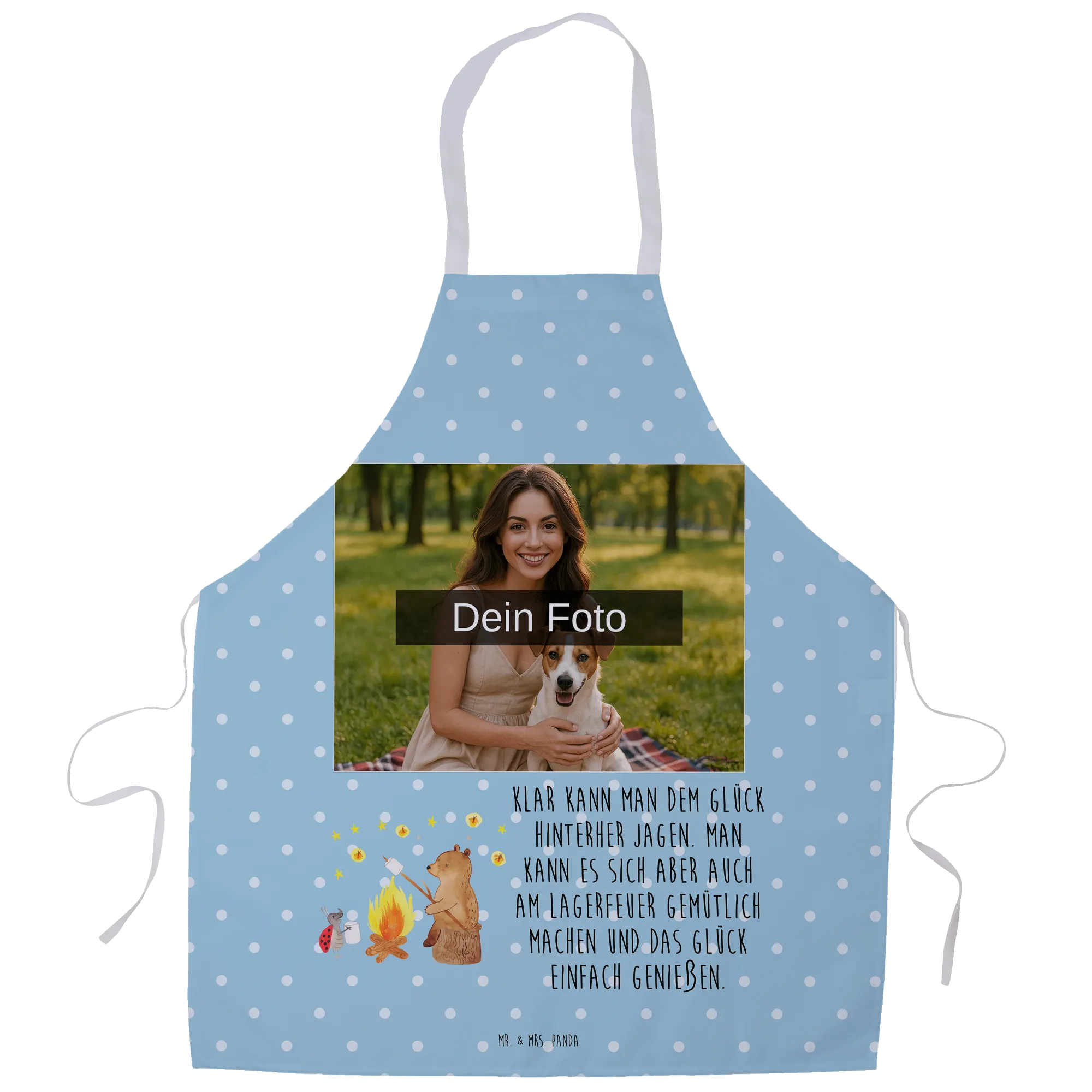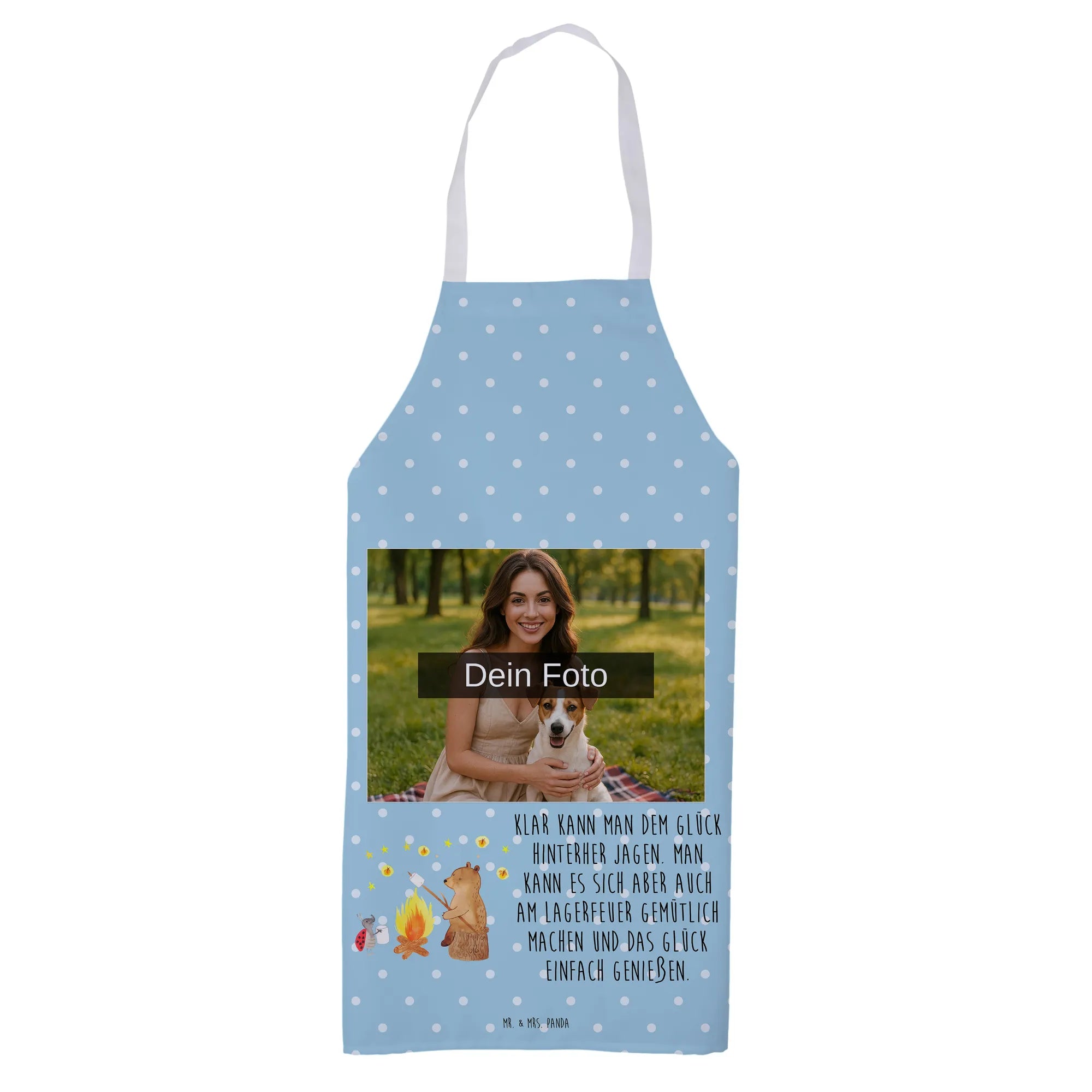 Personalisierte Foto Kochschürze Bär & Marienkäfer Lagerfeuer