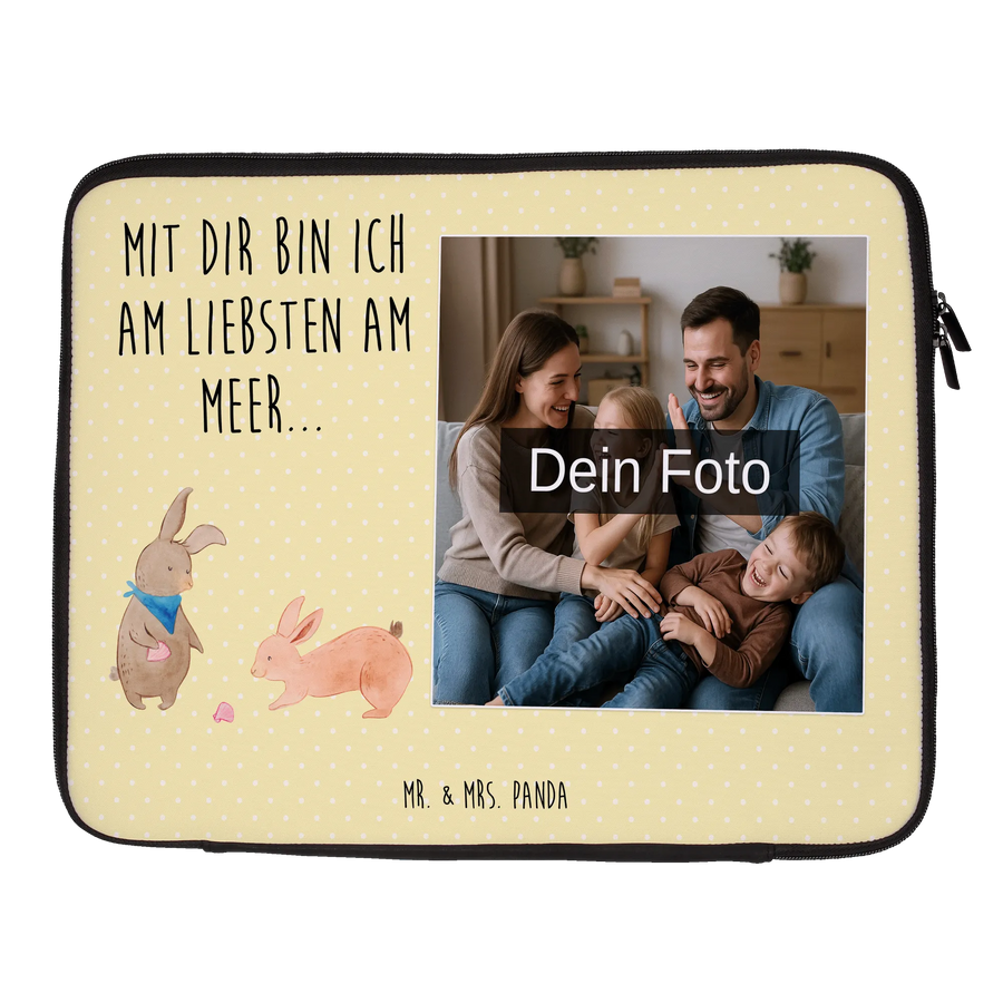 Laptoptasche Mit Fotodruck Hasen Muschel - 20 x 28 cm - Gelb Pastell