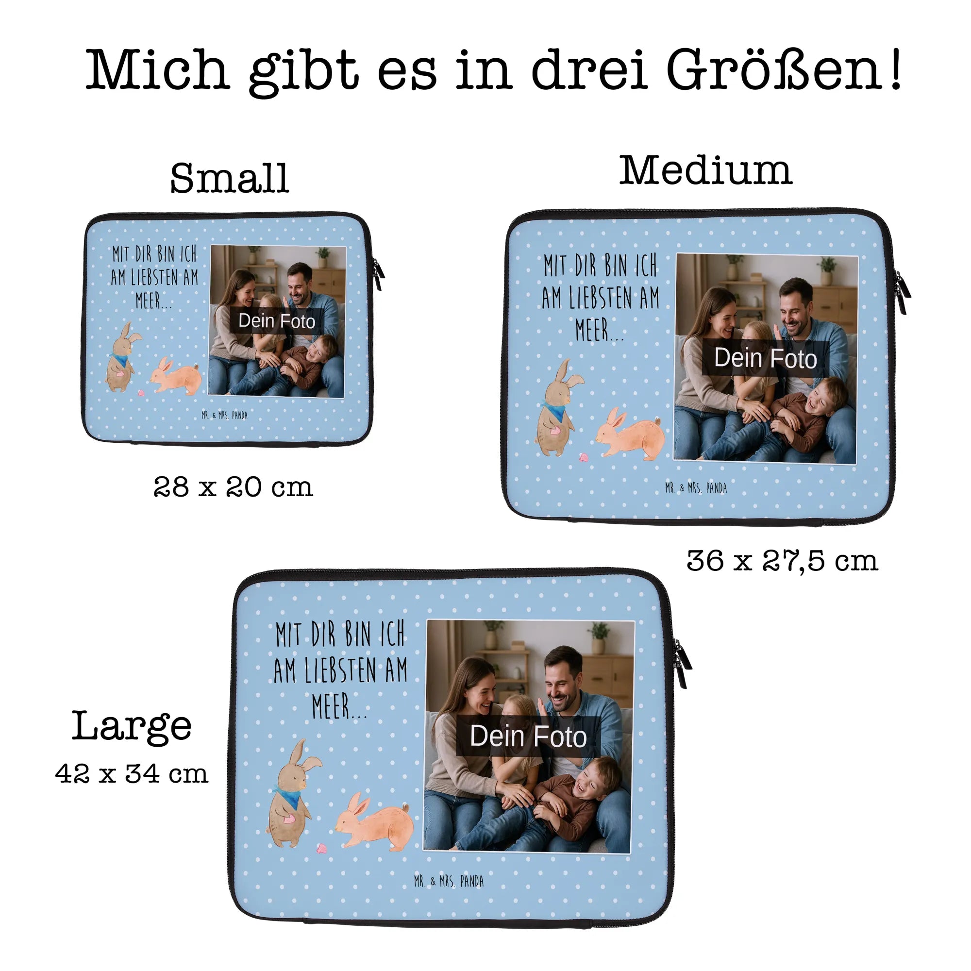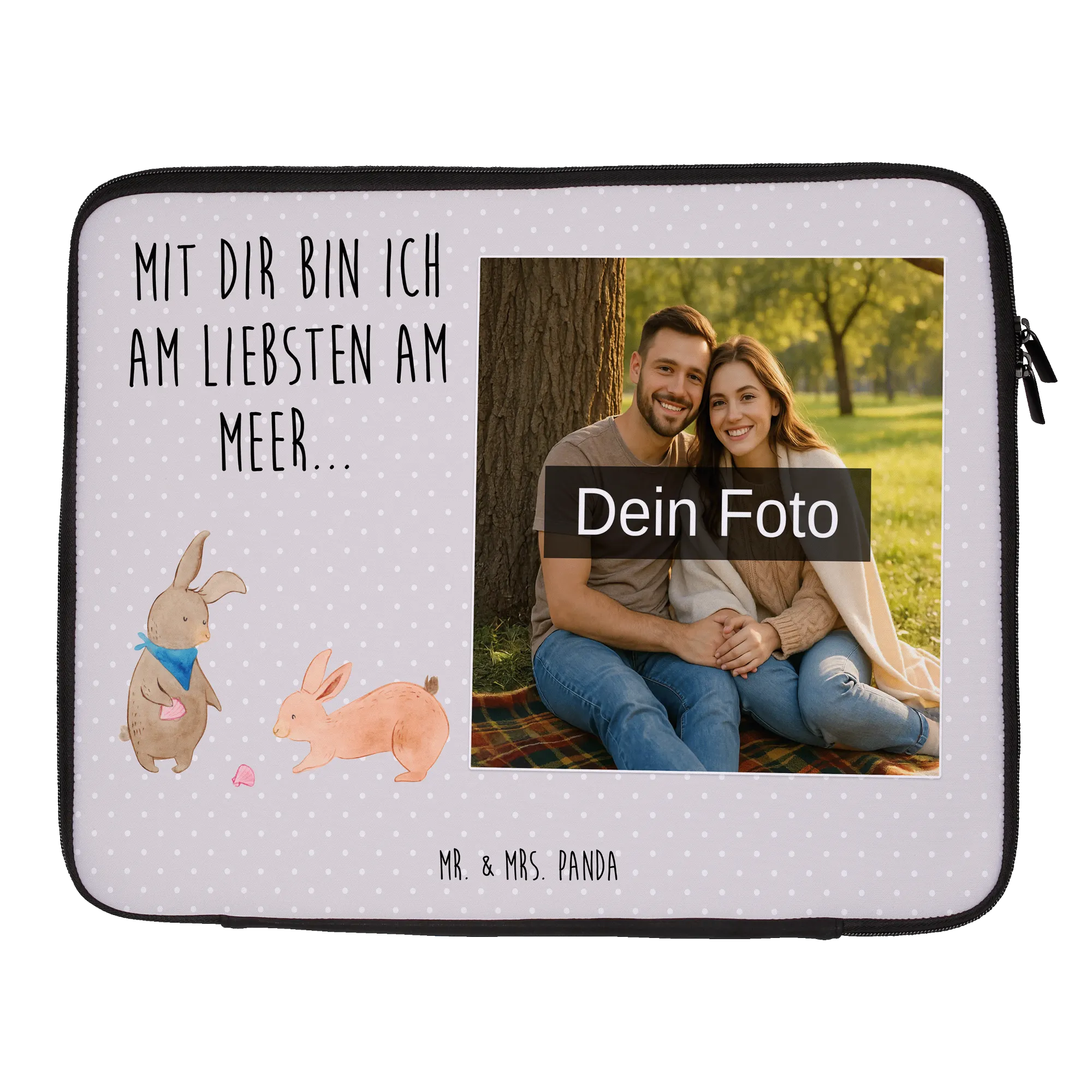 Mit der personalisierten Foto Notebook Tasche von Mr. & Mrs. Panda kannst du deinen Laptop sicher und stylisch transportieren! Diese Tasche hat die praktischen Maße 420 mm x 320 mm x 30 mm und ist aus wasserabweisendem Neopren gefertigt. Sie schützt dein Gerät vor Staub und Kratzern und sieht dabei auch noch super aus! Die coolen Motive von Mr. & Mrs. Panda sorgen dafür, dass du immer im Trend bleibst. Du kannst die Tasche sogar mit deinem eigenen Foto personalisieren! Denke daran, dass dein Bild in hoher Auflösung vorliegt, um ein optimales Druckergebnis zu erzielen. Achte beim Hochladen auch darauf, dass der Bildausschnitt perfekt ist. Dank des robusten Reißverschlusses hast du einen schnellen Zugriff auf dein Notebook, egal wo du bist. Diese Tasche ist das perfekte Accessoire für Schule, Uni oder Büro – style dich und schütze dein Gerät gleichzeitig!