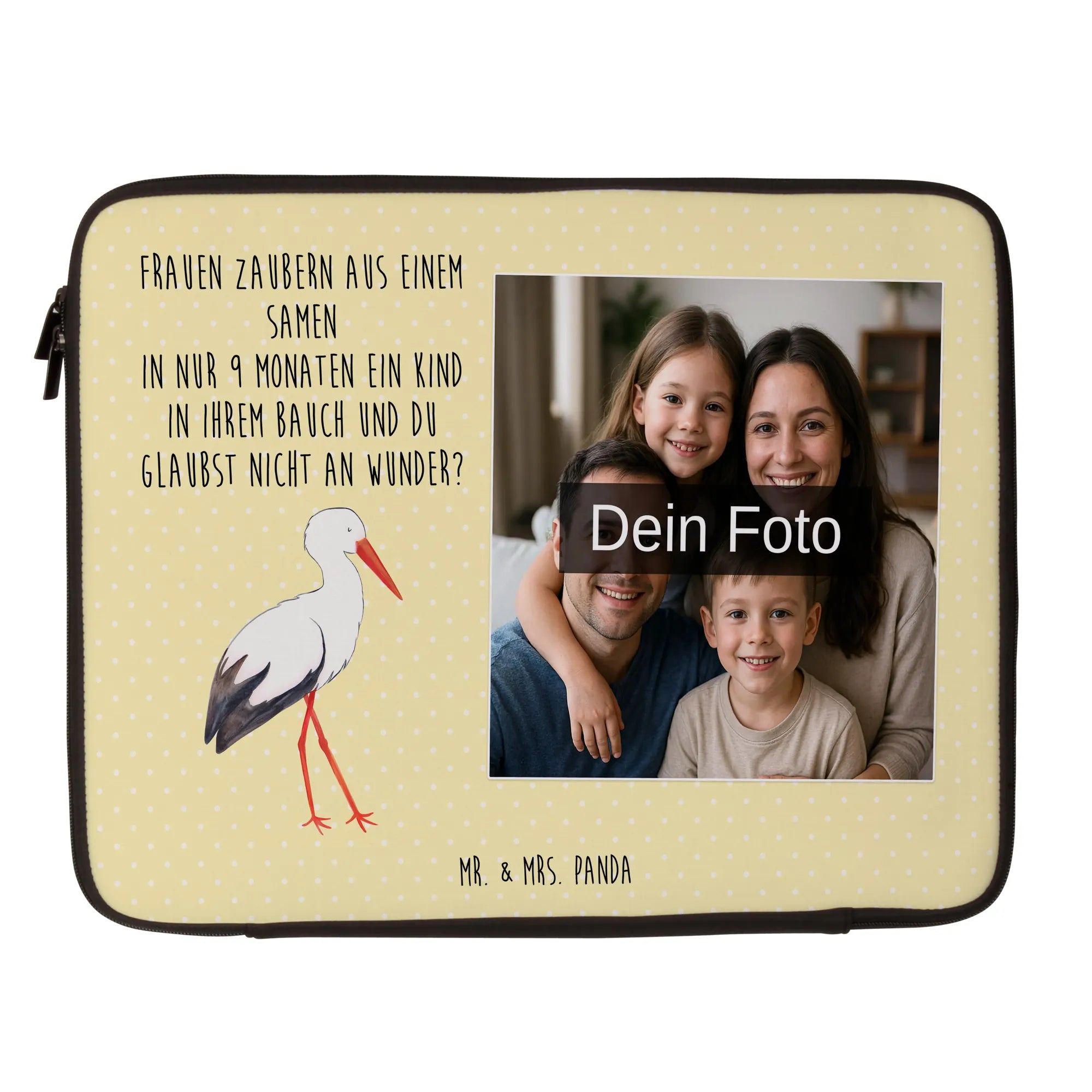 Die personalisierte Foto Notebook Tasche von Mr. & Mrs. Panda ist der optimale Schutz für deine elektronischen Geräte! Diese stilvolle und praktische Tasche misst 360 mm x 270 mm x 30 mm und besteht aus wasserabweisendem Neopren. Ihr leichtes Design macht sie perfekt für unterwegs! Die Vorder- und Rückseite sind aufwendig mit entzückenden Motiven und Sprüchen bedruckt. Du kannst die Tasche ganz individuell mit deinem eigenen Foto gestalten. Denke daran, ein Bild in hoher Auflösung hochzuladen, damit das Druckergebnis gestochen scharf ist. Der robuste Reißverschluss sorgt dafür, dass dein Gerät sicher verstaut ist und schnell zugänglich bleibt, während die Tasche gleichzeitig Schutz vor Kratzern, Staub und weiteren Beschädigungen bietet. Pflege sie ganz einfach mit einem feuchten Tuch — sie sollte nicht in die Waschmaschine! Perfekt für das geschäftige Leben oder als durchdachtes Geschenk für Freunde und Familie! Verleihe deinem Laptop eine persönliche Note mit unserer einzigartigen Tasche, die dich immer begleitet.