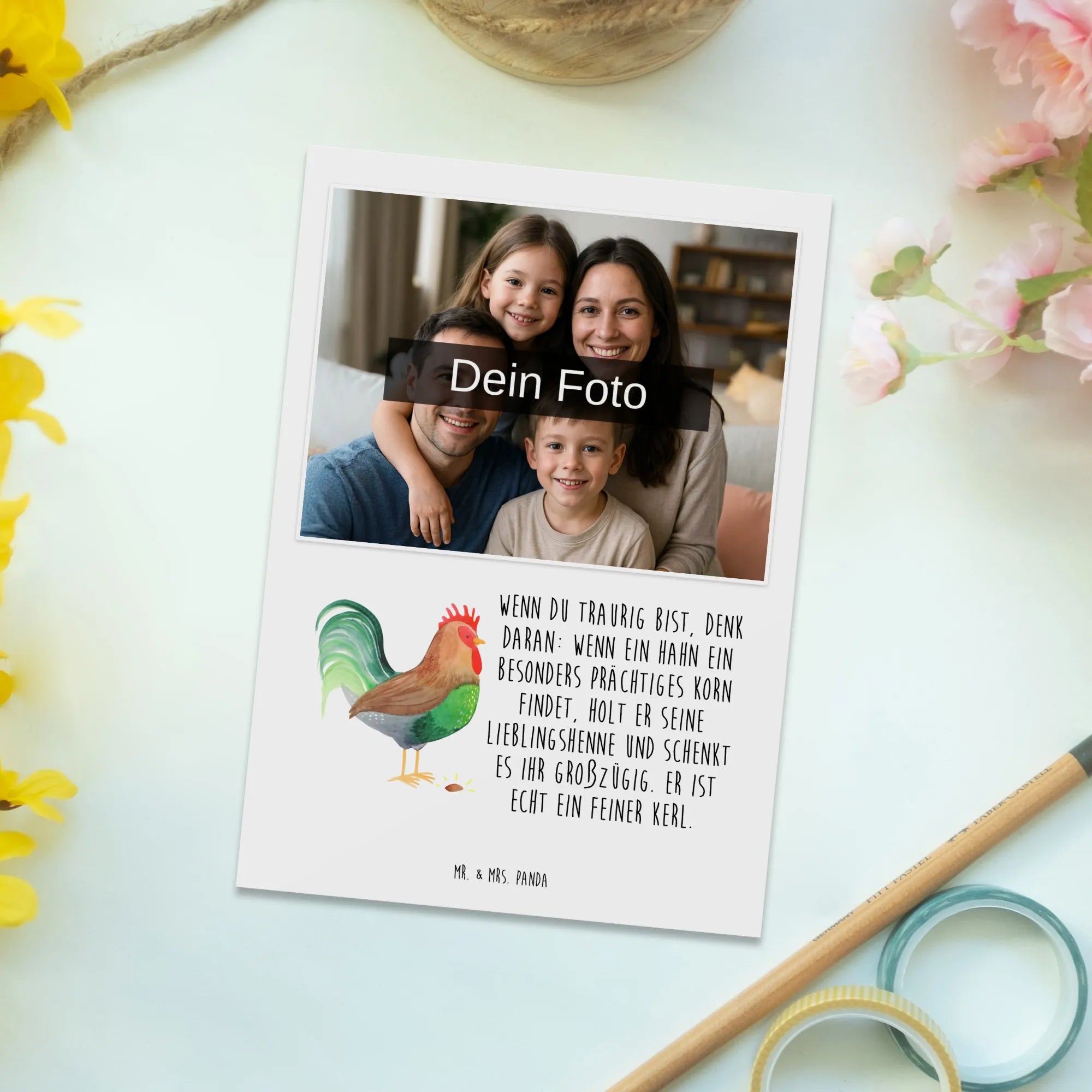 Entdecke die perfekte personalisierte Foto Postkarte mit dem zauberhaften Motiv von einem stolzen Hahn, der sein prächtiges Korn mit seiner Lieblingshenne teilt. Diese Postkarte ist nicht nur ein schöner Blickfang, sondern auch ein wunderbares Geschenk für Freunde, Familie und all jene, die die Liebe zur Natur und zum Bauernhof hegen.