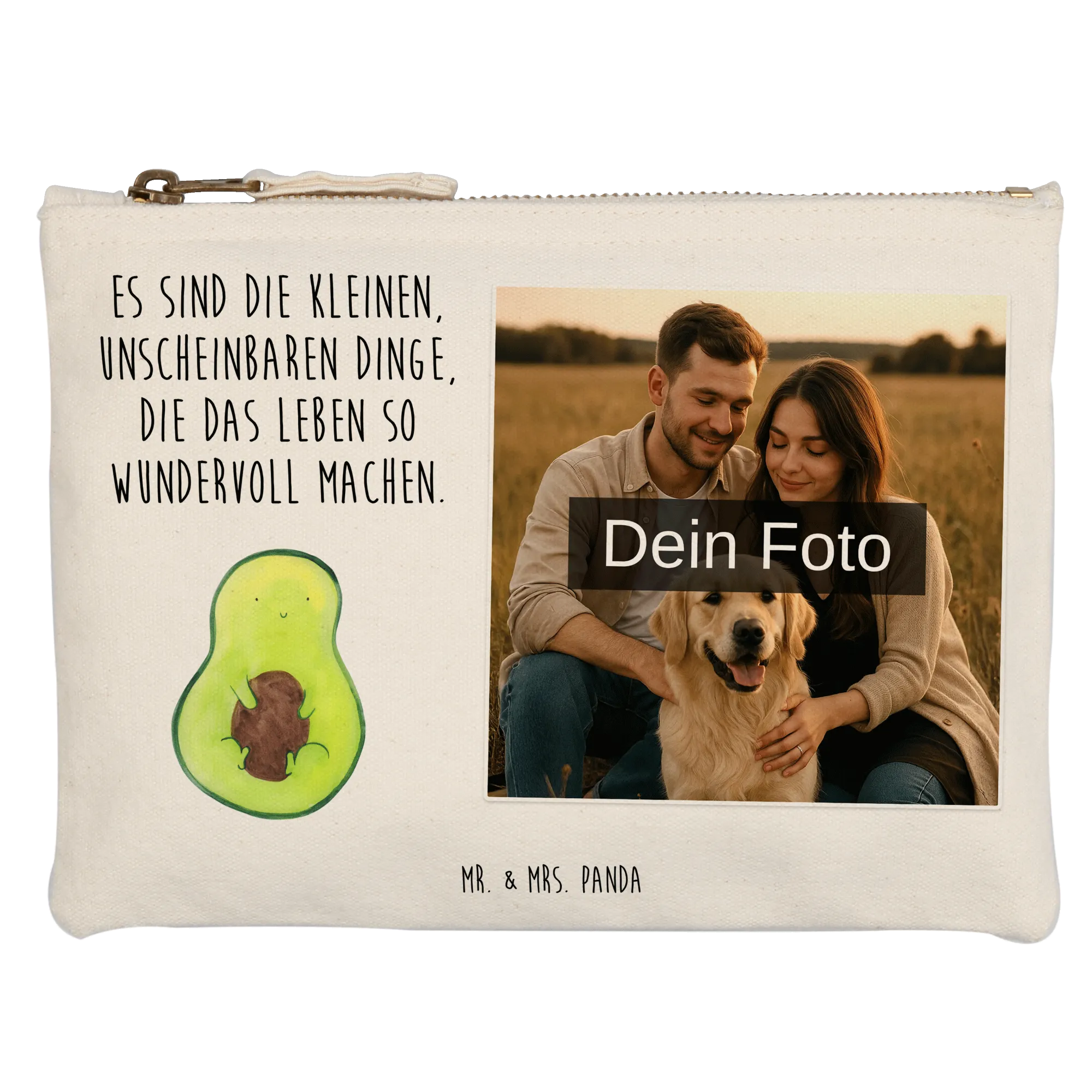 Mit der personalisierten Foto Schminktasche von Mr. & Mrs. Panda bringst du deinen persönlichen Stil perfekt zur Geltung! Diese hochwertige Tasche aus 100% weicher Baumwolle ist in den Größen 20 x 15 cm, 25 x 20 cm und 30 x 25 cm erhältlich. Sie lässt sich ganz nach deinem Geschmack mit deinem Wunschfoto bedrucken. Perfekt für die Aufbewahrung deiner Kosmetikartikel, für Stifte oder zum Sammeln von Belegen. Die tollen Designs und Sprüche schenken dir immer ein Lächeln! Dank der umsäumten Innennähte bleibt die Form auch bei intensivem Gebrauch erhalten. Pflege sie am besten mit einer lauwarmen Handwäsche und genieße lange Freude an deinem einzigartigen Accessoire!