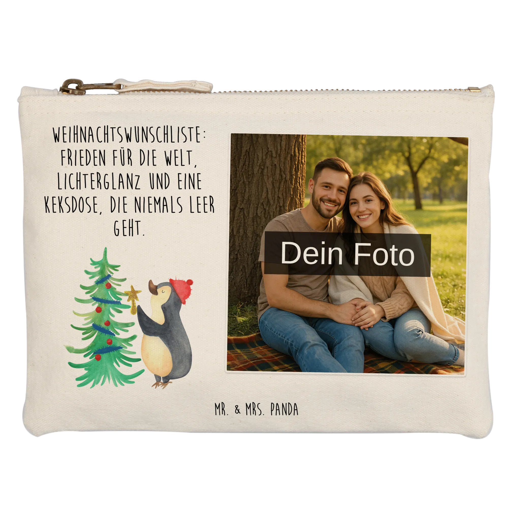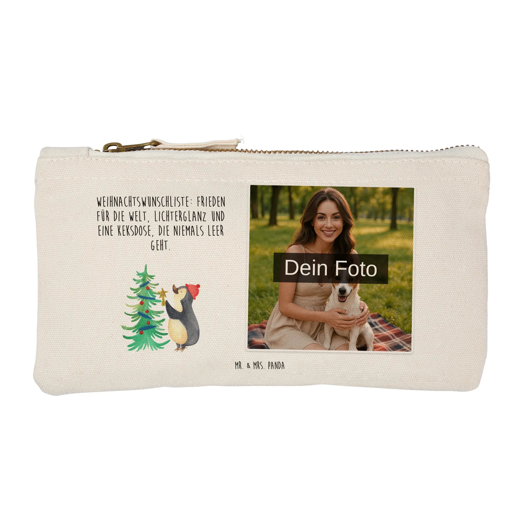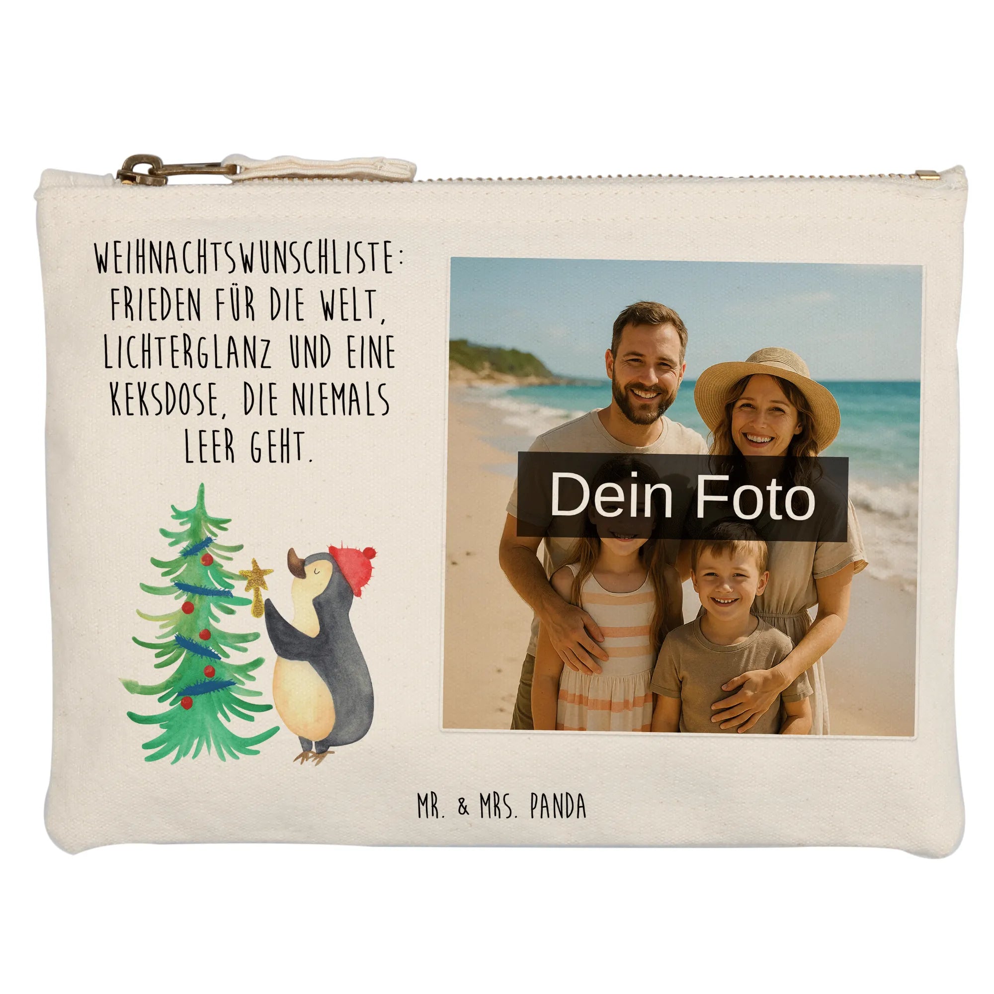 Personalisierte Foto Schminktasche Pinguin Weihnachtsbaum - Größe S Klein