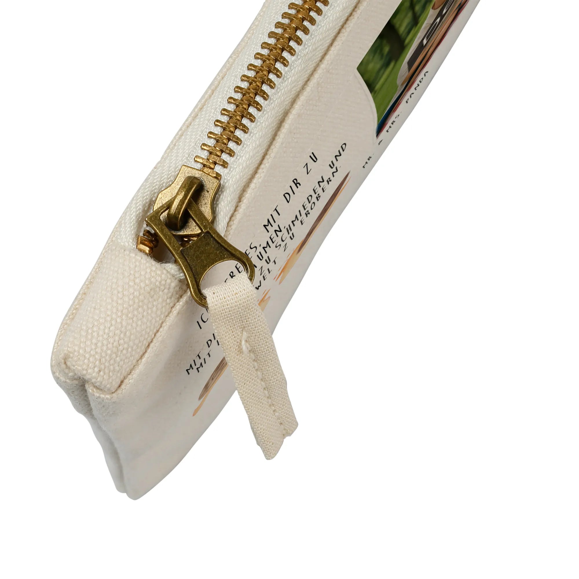 Erlebe die Freude an einer personalisierten Foto Schminktasche von Mr. & Mrs. Panda! Diese schmucker Tasche wird nicht nur von unseren süßen Designs verschönert, sondern kann auch mit deinem eigenen Wunschfoto verziert werden. Egal, ob für den Alltag oder besondere Anlässe - sie ist perfekt, um deine Kosmetikartikel stilvoll zu transportieren. In verschiedenen Größen erhältlich, um sicherzustellen, dass du die richtige Größe für all deine Beauty-Utensilien bekommst! Das Material besteht zu 100% aus weicher Baumwolle, was sie besonders angenehm im Griff macht. Darüber hinaus ist die Tasche besonders formbeständig, dank der umsäumten und eingeschlagenen Innennähte. Eine einfache Pflege ist garantiert: Wir empfehlen lauwarme Handwäsche, damit die Farben strahlend bleiben. Denk dran, für das gewünschte Druckergebnis sollte das Bild in hoher Auflösung vorliegen und der Bildausschnitt gut gewählt sein. Verwandle Erinnerungen in eine stilvolle Aufbewahrungslösung und mache deinen Alltag ein bisschen schöner!