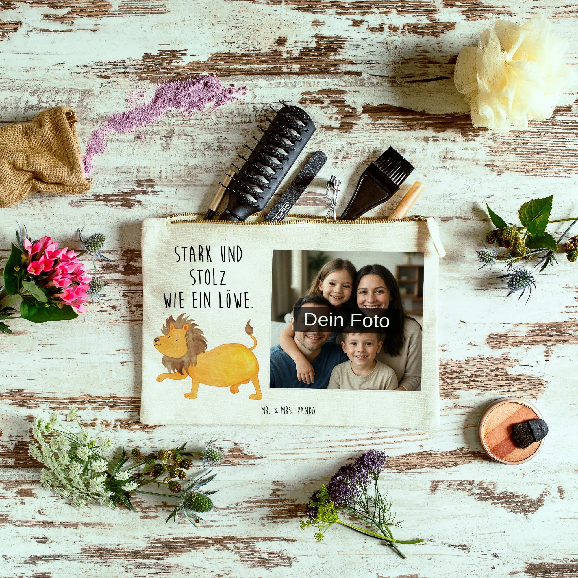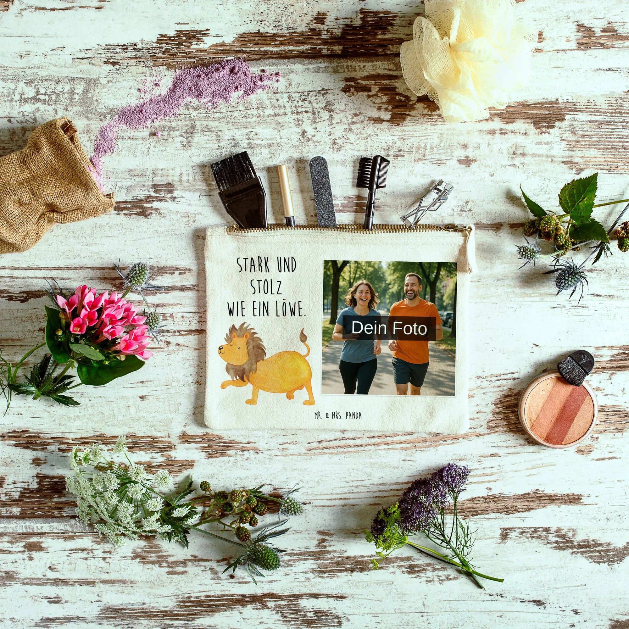 Entdecke die personalisierte Foto Schminktasche von Mr. & Mrs. Panda! Sie verleiht deinem Alltag eine persönliche Note, denn du kannst sie mit deinem Wunschfoto bedrucken lassen. Diese schmucke Tasche bietet Platz für all deine Kosmetikartikel und eignet sich auch bestens als Stiftemäppchen oder für kleine Aufbewahrungen. Das hochwertige Material aus 100% weicher Baumwolle sorgt für ein angenehmes Gefühl auf der Haut. In verschiedenen Größen erhältlich, um deinen Bedürfnissen gerecht zu werden. Die Innennähte sind umsäumt und eingeschlagen, was der Tasche eine formbeständige Struktur verleiht. Pflegehinweise: Eine lauwarme Handwäsche ist empfohlen, um die Farben und das Design zu erhalten. Achte darauf, dass das Bild, das du hochlädst, in hoher Auflösung vorliegt, damit das Druckergebnis klar und hochwertig wird. Lass dich von deiner Kreativität leiten und kreiere eine Tasche, die so einzigartig ist wie du!