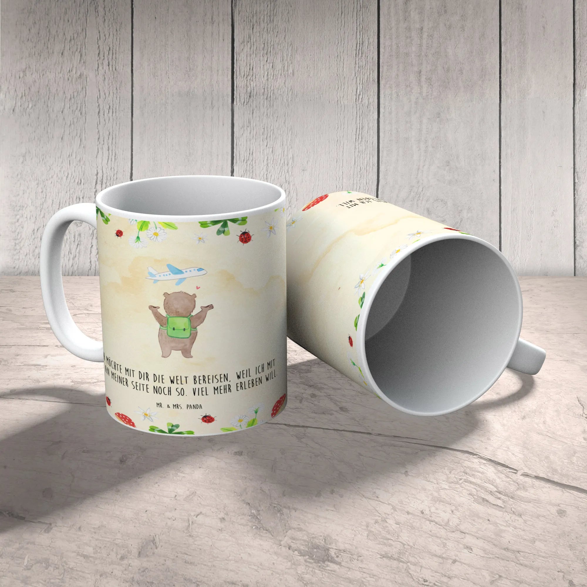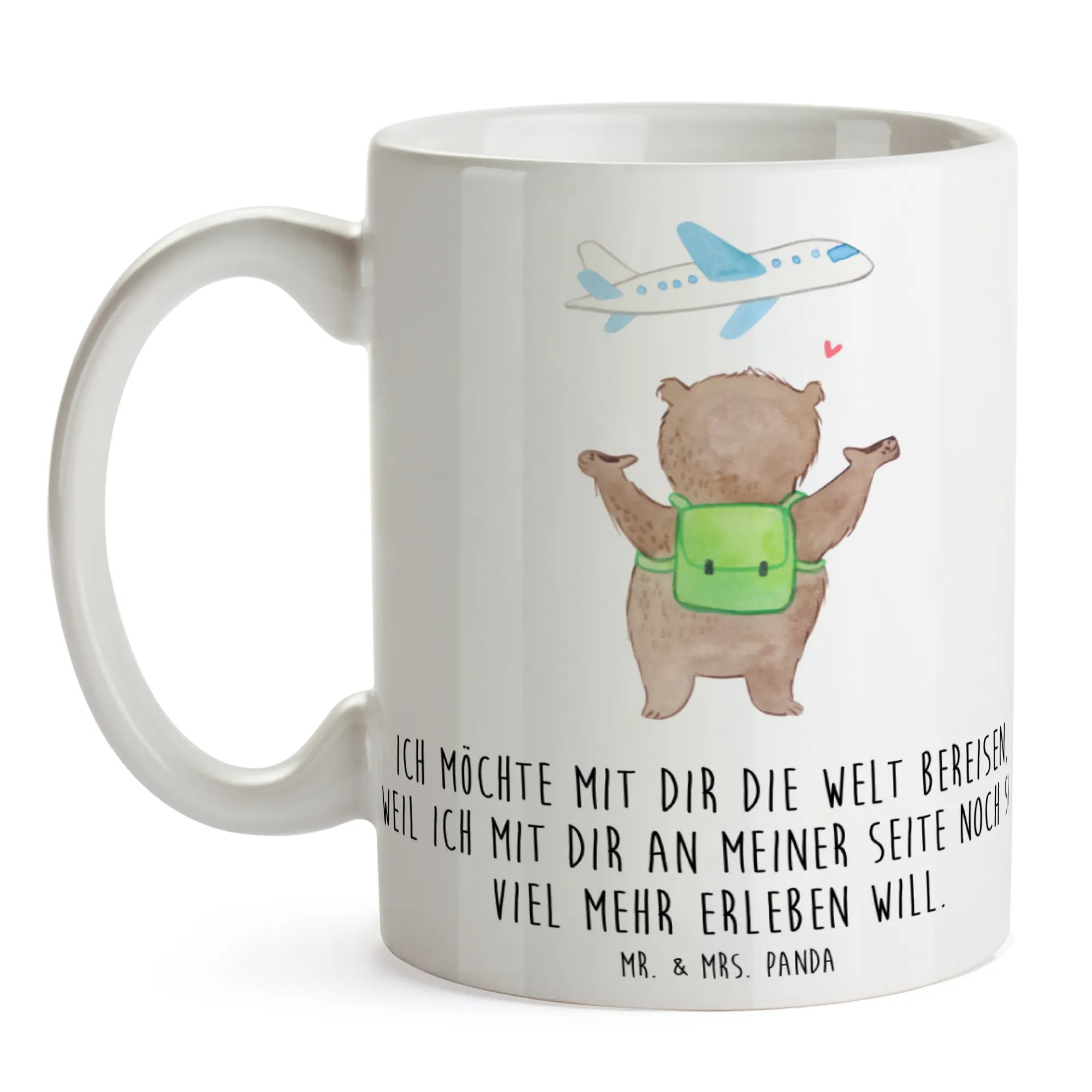 Die Tasse hat eine Füllmenge von 300 ml und ist aus hochwertiger Keramik gefertigt, wodurch sie nicht nur wunderschön aussieht, sondern auch praktisch ist. Sie kann einfach in der Mikrowelle erhitzt und in der Spülmaschine gereinigt werden. Und das Beste daran: Die farbenfrohen Designs und die Qualität der Tasse bleiben selbst nach 2000 Spülgängen frisch und lebendig! Mit einem persönlichen Text, wie "Ich möchte mit dir die Welt bereisen, weil ich mit dir an meiner Seite noch so viel mehr erleben will", wird diese Tasse zu einem echten Liebesbeweis und einem täglichen Begleiter.