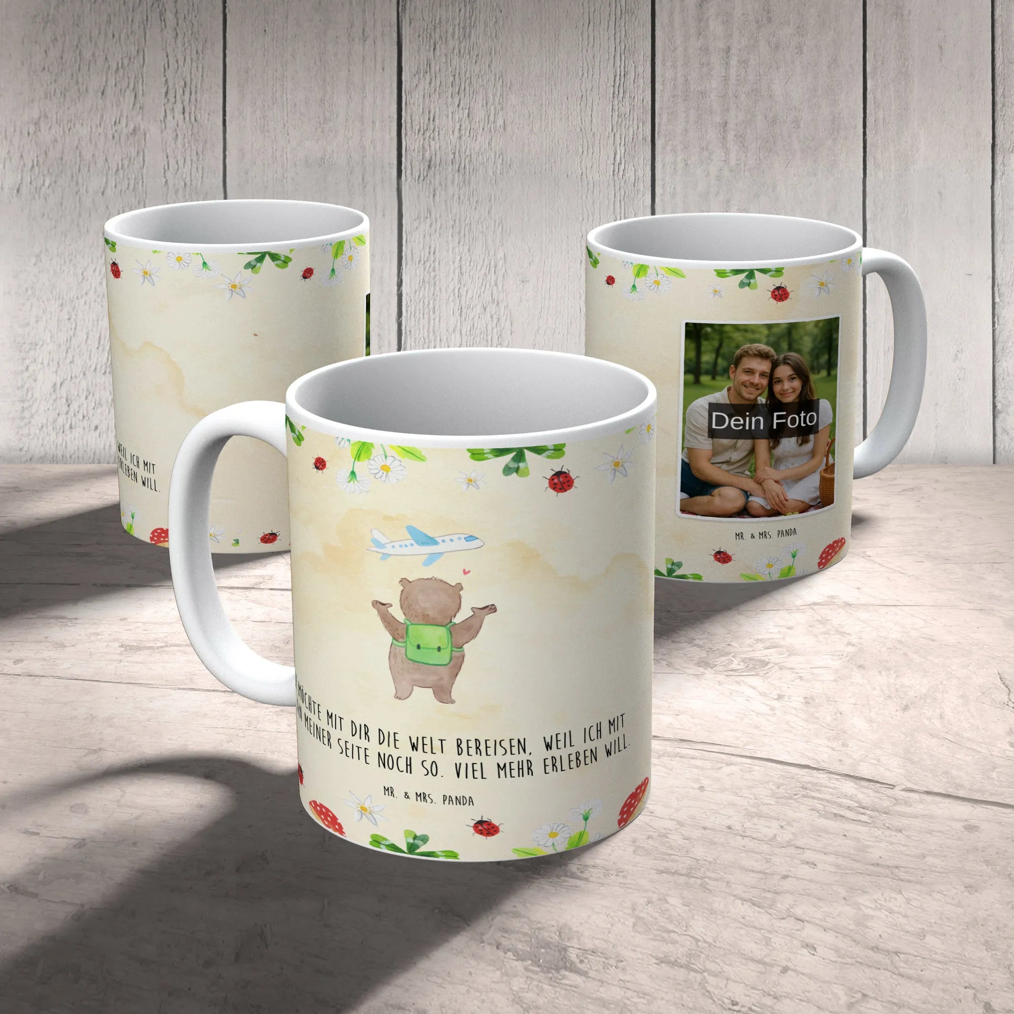 Personalisierte Foto Tasse Bär Flugzeug - Weiß