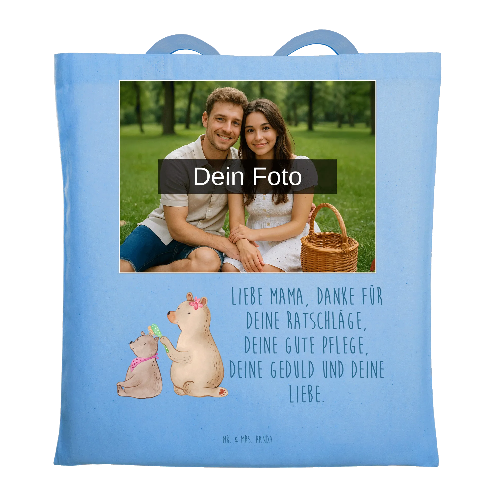 Personalisierte Foto Tragetasche Bär Kind - Sky Blue
